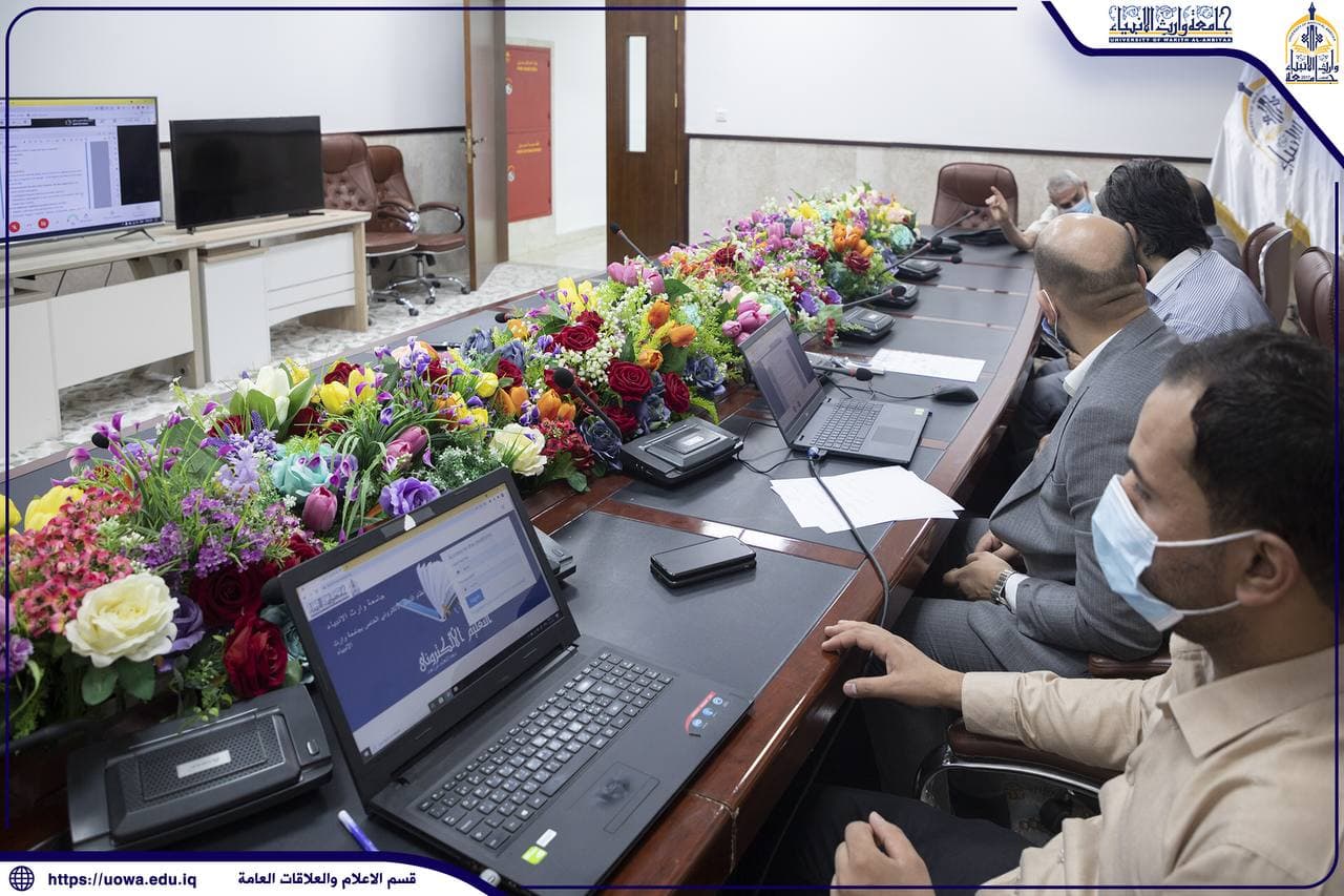 اجتمعت اللجنة المركزية لمراقبة سير المحاضرات الإلكترونية في جامعة وارث الانبياء(عليه السلام) برئاسة السيد المساعد العلمي الاستاذ الدكتور عباس الدعمي بكادر عمادة كلية الادارة والاقتصاد متمثلة بالسيد عميد الكلية الأستاذ الدكتور عواد الخالدي ، حيث اطلعت اللجنة على المحاضرات الإلكترونية المقدمة لطلبة الكلية والوقوف على المعوقات والمشاكل التي قد تواجههم والعمل على حلها بالسرعة الممكنة لتحقيق الفائدة المثلى لطلبتنا الأعزاء .