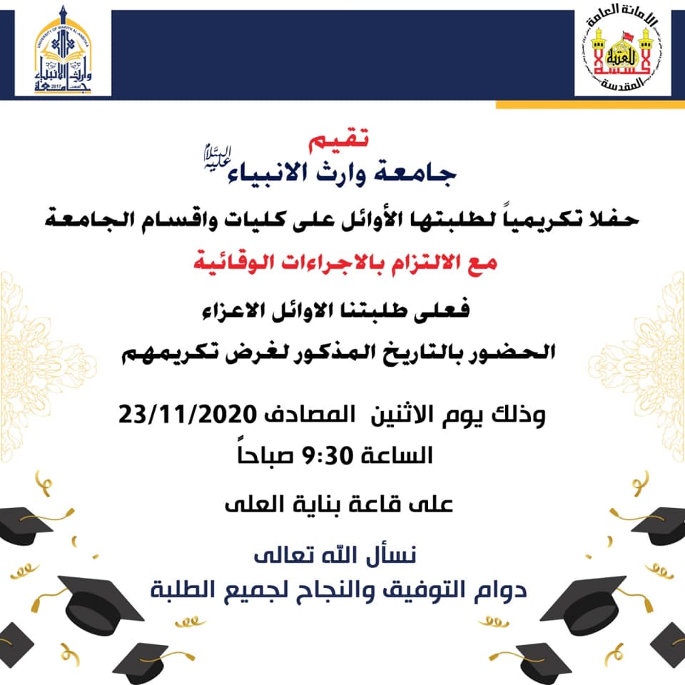 تقيم جامعة وارث الانبياء(عليه السلام) احتفالية تكريم طلبتها الثلاثة الأوائل على كليات واقسام الجامعة