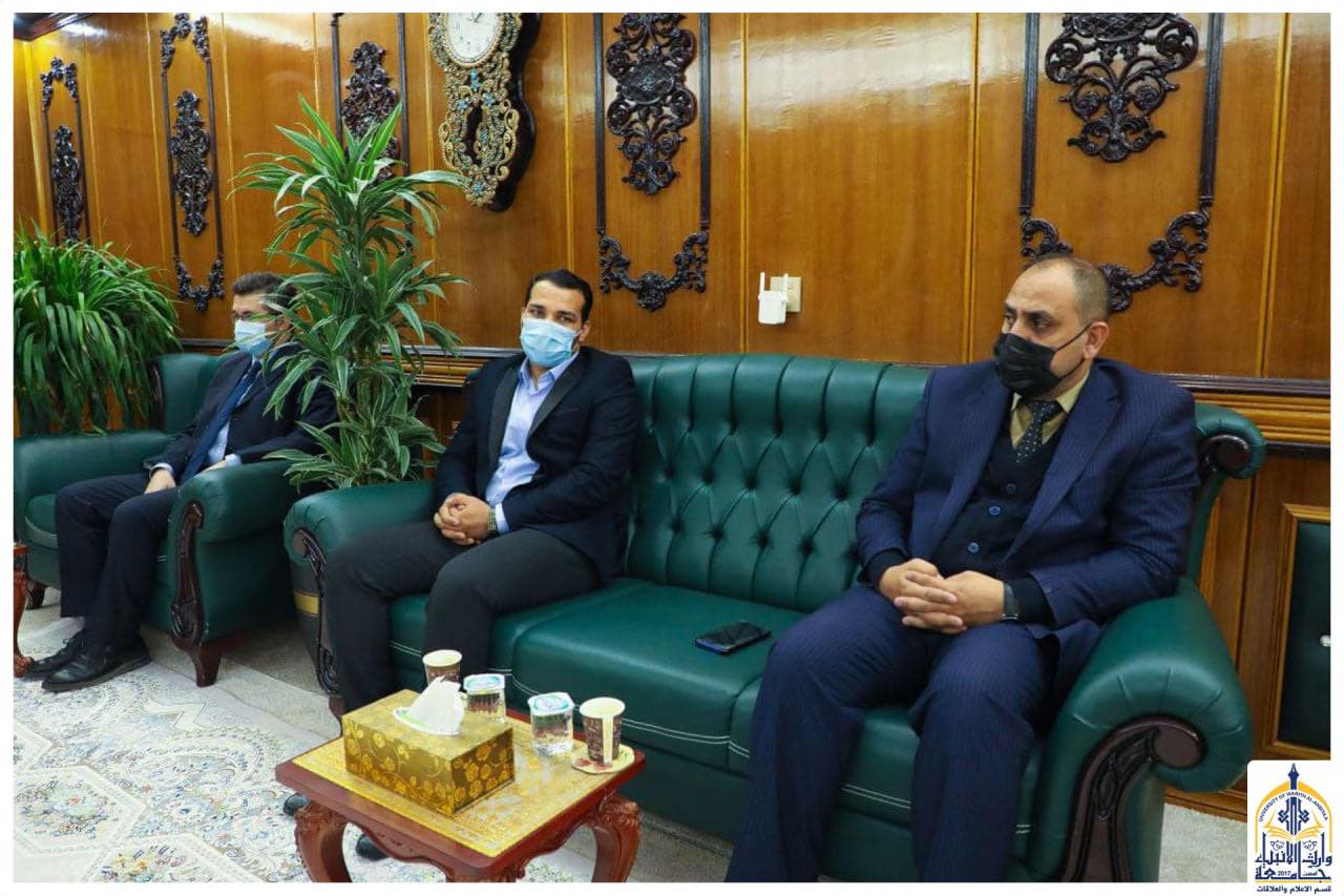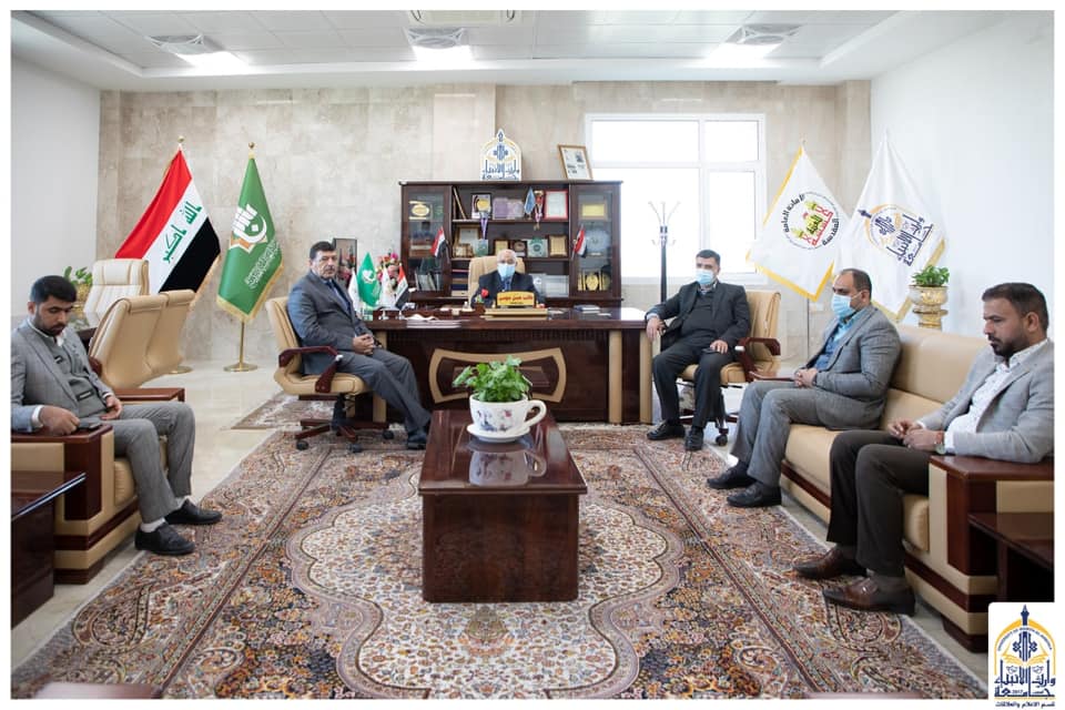 زار وفد من جامعة وارث الانبياء (عليه السلام) جامعة العميد التابعة للعتبة العباسية المقدسة متمثلاً بالسيد المساعد العلمي لرئيس الجامعة الاستاذ الدكتور عباس الدعمي والسيد عميد كلية الطب الاستاذ الدكتور فالح البياتي والسادة معاون رئيس قسم التعليم العالي ورئيس قسم الشؤون العلمية ، كان باستقبال الوفد السيد رئيس جامعة العميد الأستاذ الدكتور مؤيد الغزالي ، تباحث الطرفان في العديد الجوانب التي تخص الواقع التعليمي وآليات التعاون العلمي والأكاديمي وتبادل الخبرات بين الجامعتين لاسيما وقد افتتحت هذا العام كلية الطب في جامعة وارث الأنبياء (عليه السلام).