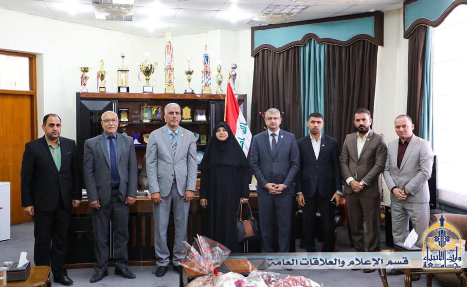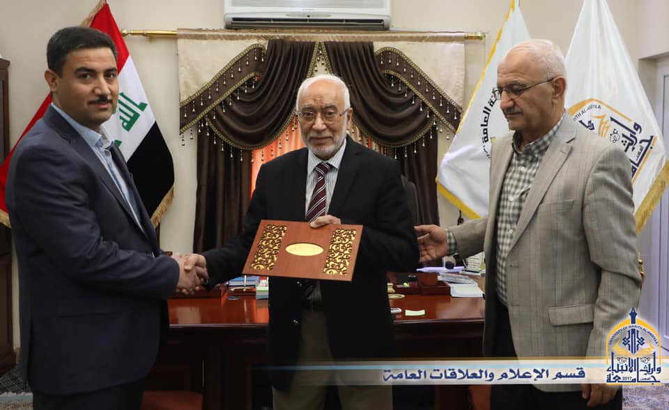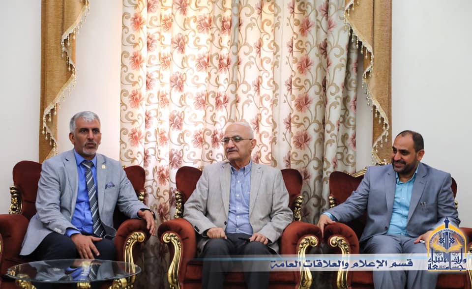 زار وفد رسمي ممثلاً عن جامعة وارث الانبياء (عليه السلام) وجامعة الزهراء (عليها السلام) التابعتين للعتبة الحسينية المقدسة برئاسةالسيد رئيس جامعة وارث الانبياء (عليه السلام) وكالةً الاستاذ الدكتور عباس الدعمي جامعة كربلاء لتقديم التهاني والتبريكات الى الدكتور باسم خليل السعيدي بمناسبة تسنمه رئاسة جامعة كربلاء وكالة .من جانبه قدم الدكتور السعيدي شكره للوفد المذكور على زيارتهم مؤكداً حرص جامعته على التعاون مع الجامعتين لاجل النهوض بالواقع التعليمي في بلدنا العزيز .