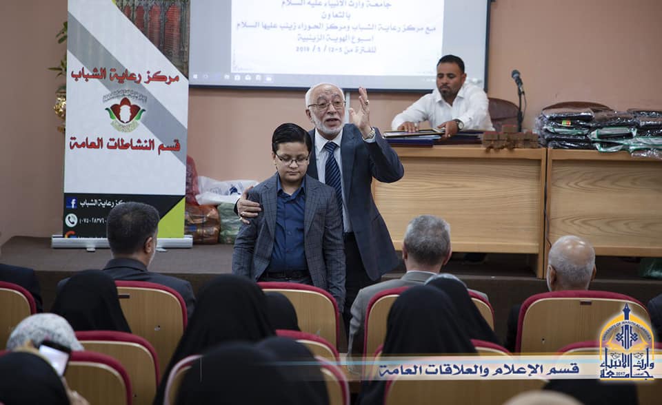 بحضور جناب السيد افضل الشامي رئيس قسم التعليم العالي في العتبة الحسينية المقدسة والسيد رئيس الجامعة الاستاذ الدكتور طالب حسن موسى والسيد المساعد العلمي وبعض السادة عمداء الكليات اختتمت فعاليات (اسبوع الهوية الزينبية) الذي أقامته جامعة وارث الانبياء (عليه السلام) بالتعاون مع مركز رعاية الشباب ومركز الحوراء زينب(عليها السلام) التابعان للعتبة الحسينية المقدسة ، حيث استمر البرنامج للمدة من ٥_١٢ /٥ /٢٠١٩ وتضمن محاضرات تثقيفية وتوعوية وارشادية ومسابقات ثقافية لطالبات الجامعة تشجيعاً وتثقيفاً لهن وحثهن على الحفاظ على هويتهن الزينبية ، تضمن حفل الختام تكريم الطالبات الملتزمات بالحجاب الاسلامي الزينبي ، وقد تحدث السيد رئيس الجامعة الأستاذ الدكتور طالب حسن موسى قائلاً: