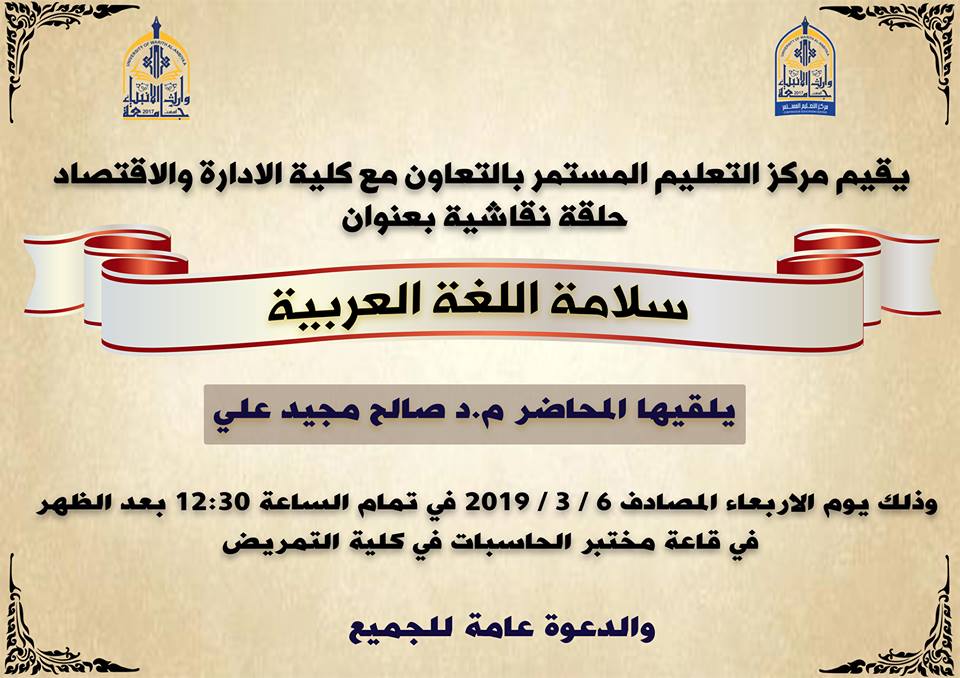 وللدخول الًى المحاضرة يرجى زيارة الرابط التالي:https://elearning.uowa.edu.iq/mod/bigbluebuttonbn/view.php?id=34173