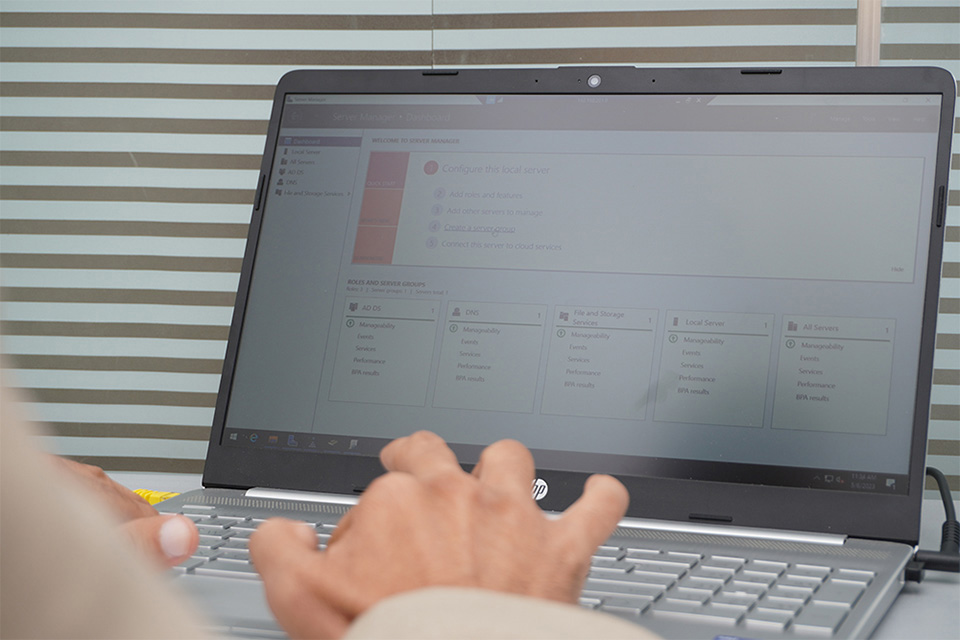 من خلال Active Directory، يُمكن للجامعة التحكم بكل مستخدم في قاعدة البيانات، مما يسمح بتحديد الإجراءات مثل تنزيل البرامج على الأجهزة وتخويل مجموعات محددة من المستخدمين للانضمام إلى مجال المؤسسة. وبذلك، يضمن تطبيق هذه الخدمة أمنًا متقدمًا وإدارة فعالة لتطبيقات المستخدمين والأنظمة والبيانات الحساسة المرتبطة بالجامعة.