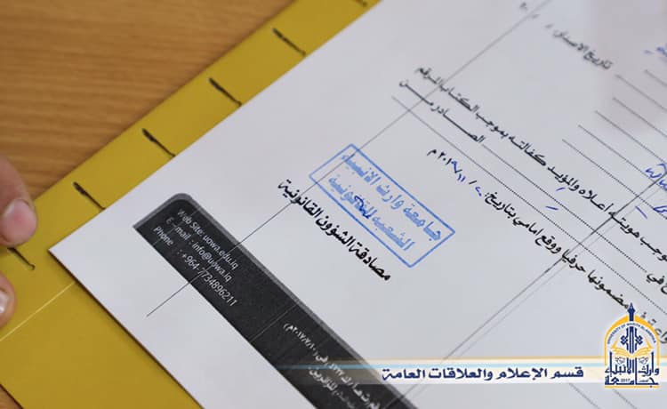 استناداً الى توجيهات السيد المساعد الاداري المحترم بضرورة متابعة وتدقيق عقود الهئية التدريسية في الجامعة يباشر موظفي قسم الشؤون القانونية بتدقيق عقود الهئية التدريسية في الجامعة.