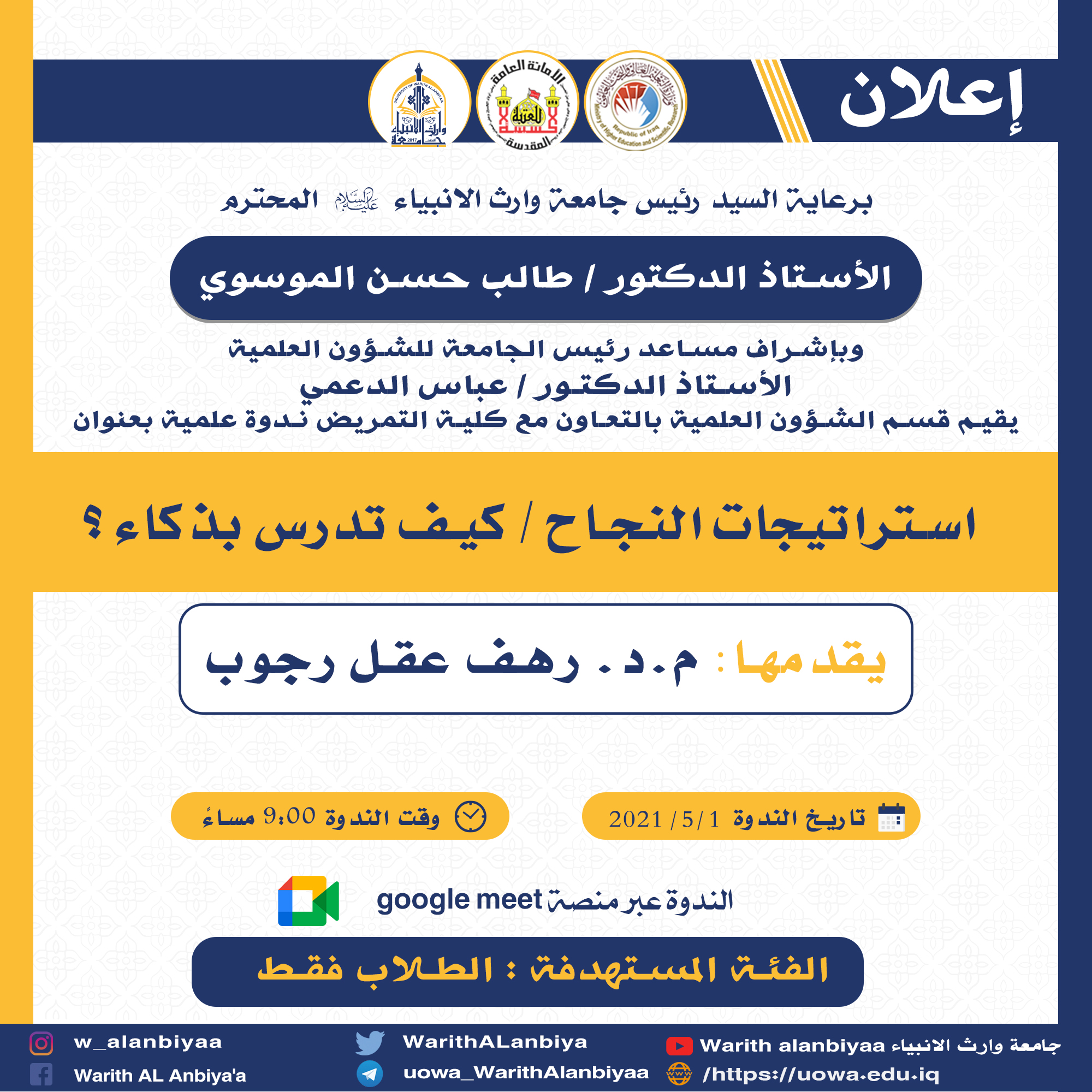 #الامانة_العامة_للعتبة_الحسينية_المقدسة#قسم_التعليم_العالي#جامعة_وارث_الانبياء_عليه_السلام#قسم_الاعلام_والعلاقات_العامة