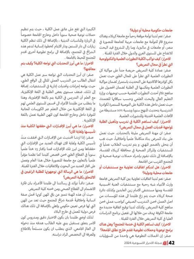 مجلة الاحرار  تلتقى الدكتور نسيم تناول الحوار عدة نقاط مهمة حول تعليم التمريض و دور العتبة في تحسين الواقع الصحي، حيث ناقش خلاله رحلته الأكاديمية وتجربته في خدمة التمريض والتعليم الطبي، خصوصًا في سياق العتبة الحسينية المقدسة. يمكن أن يتناول الحوار جوانب متعددة مثل التحديات التي واجهها، الإنجازات التي حققها، وأهمية التعاون بين في المجال التعليم الصحي. والطبي من المهم تسليط الضوء على دور العتبة الحسينية في دعم البرامج التعليمية والرعاية الصحية.