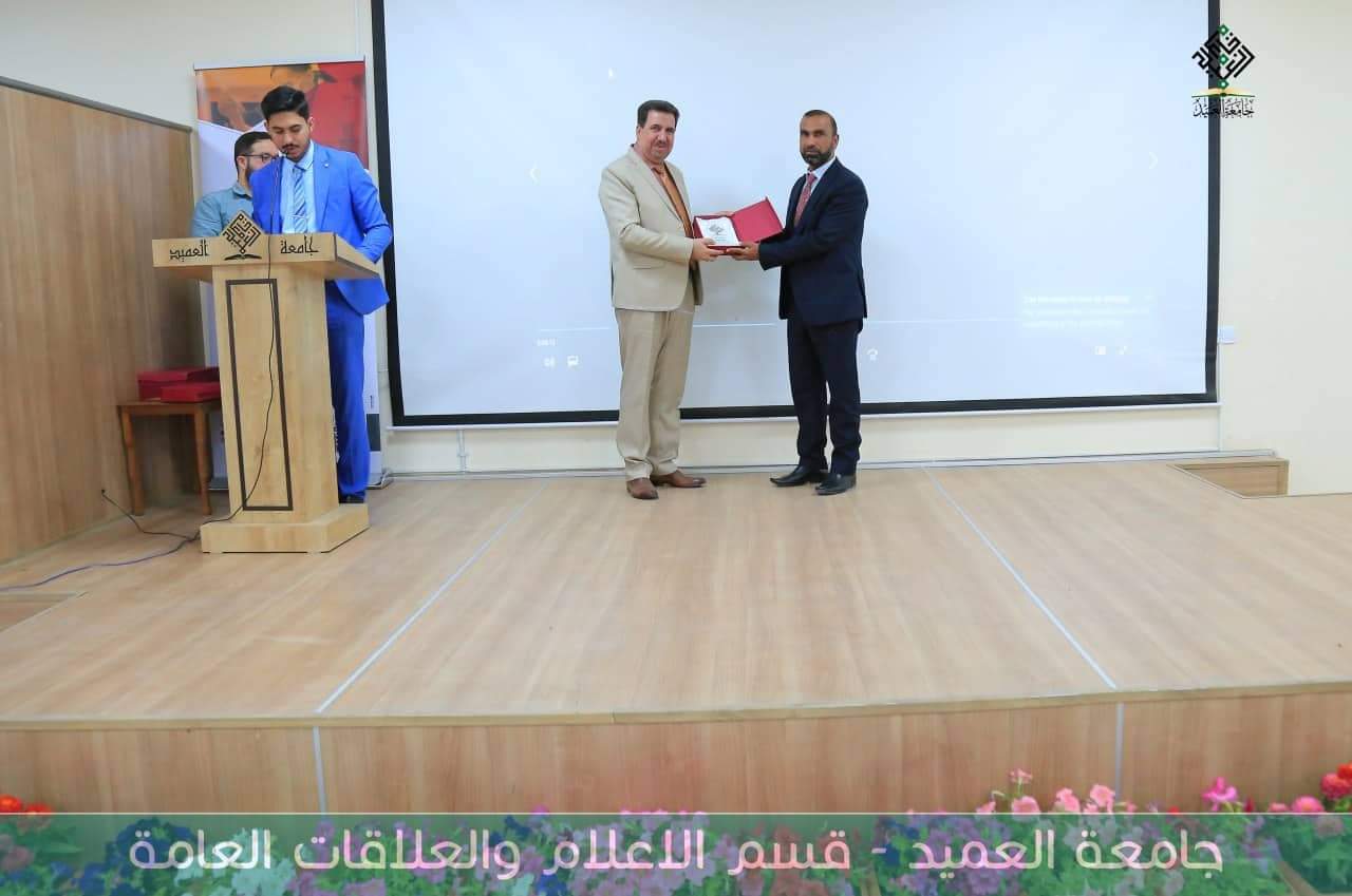 وقد تقدمت جامعة العميد بتكريم الدكتور بندر على مشاركتة في الاحتفالية ودوره الفعال الذي يقدمه في دعم المسيرة التعليمية والعلمية لمهنة التمريض.