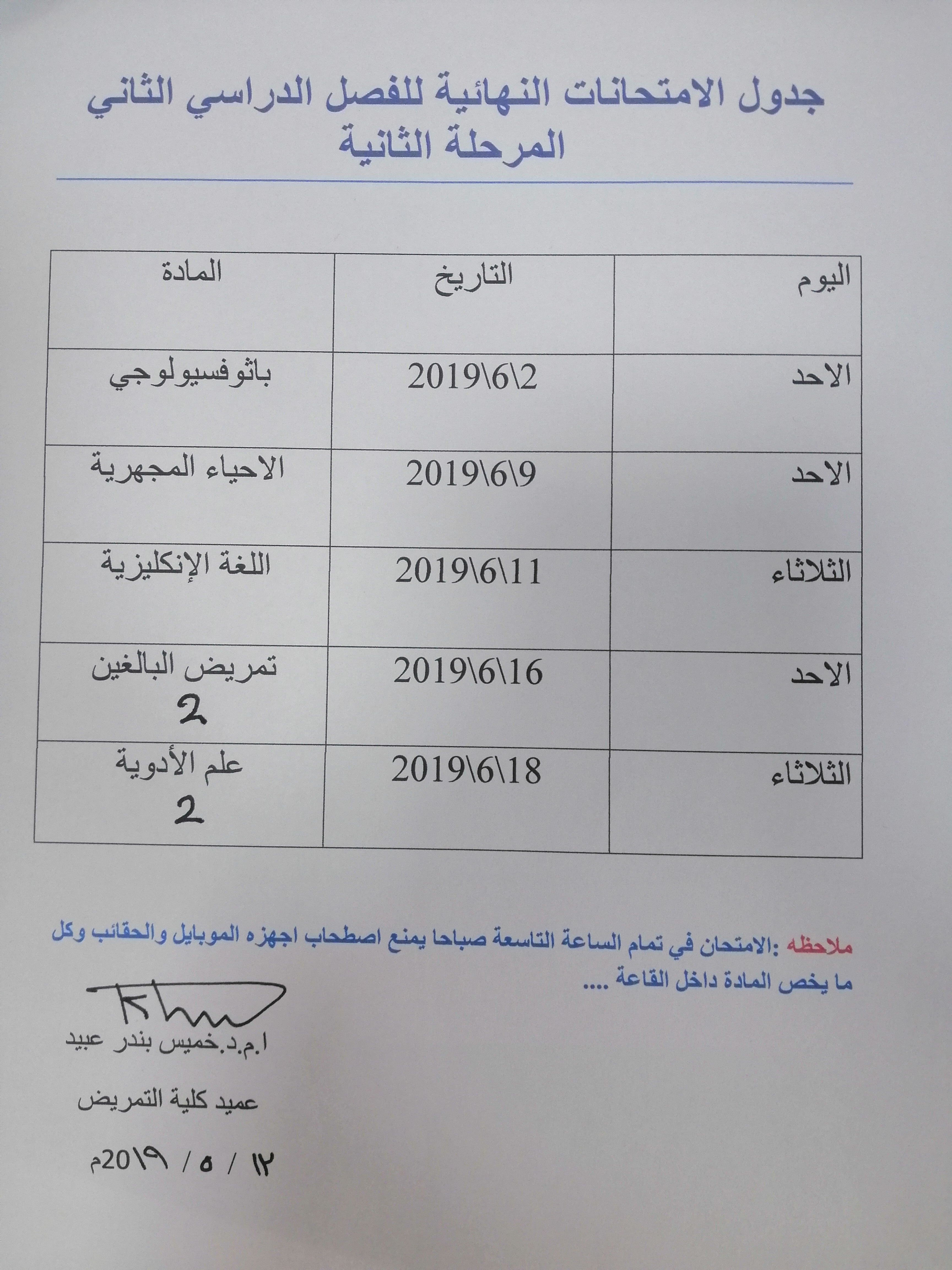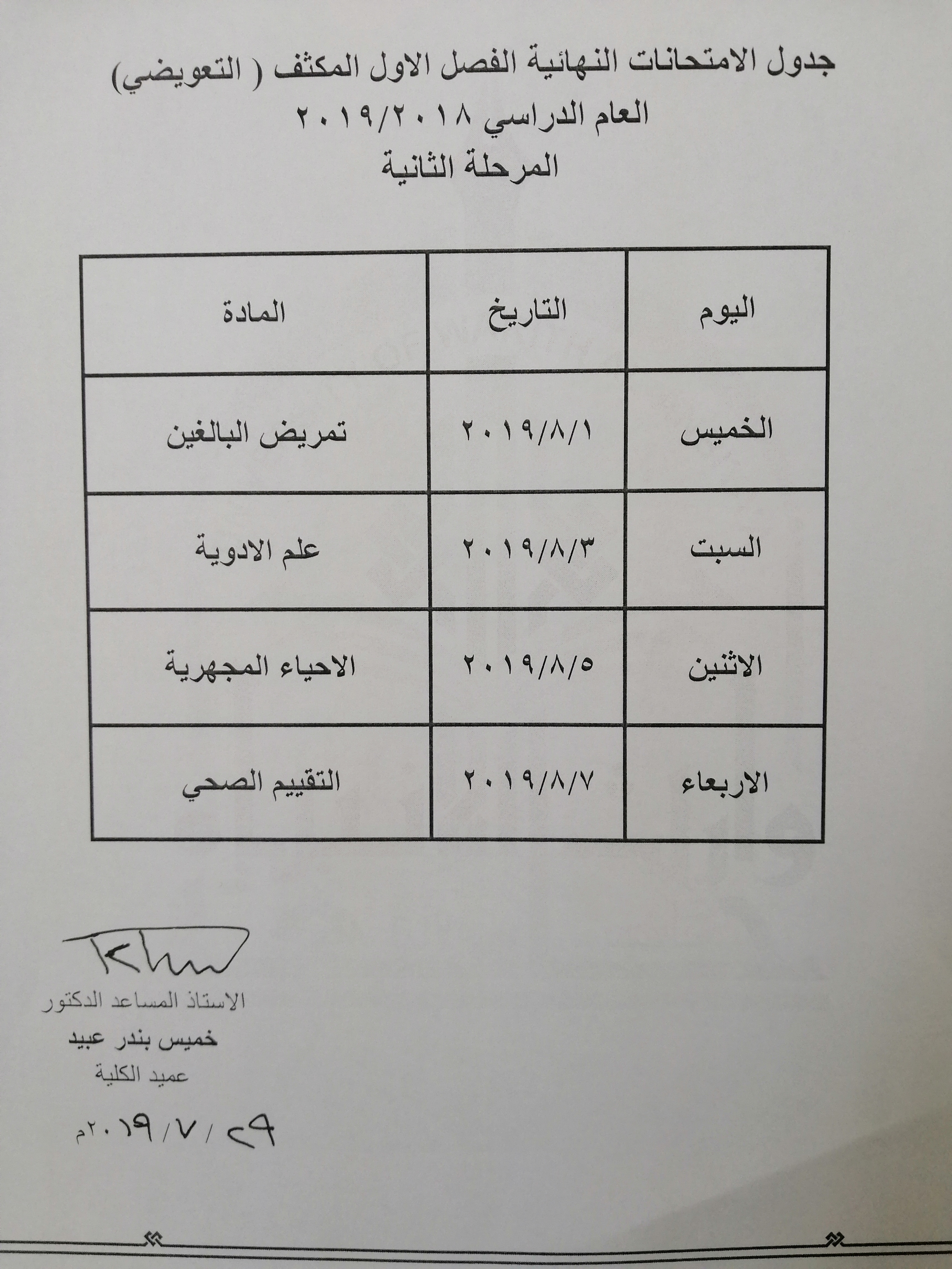 اعزائنا طلبة المرحلة الثانية، سيكون يوم غد السبت الموافق ٢٠١٩/٧/٢٠ هو اول يوم للمباشرة في التدريب الصيفي في المستشفى،