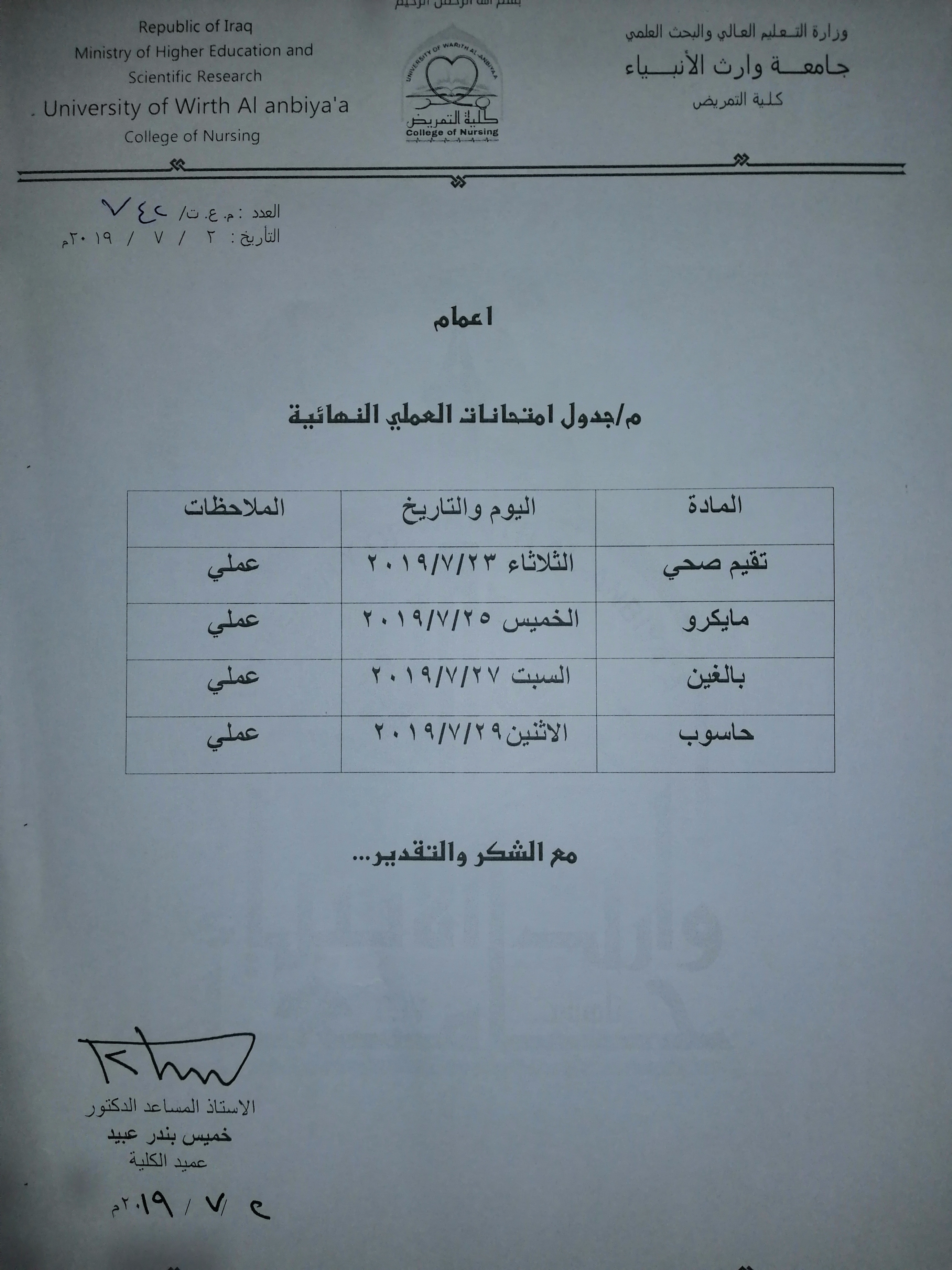 متمنين لطلبتنا الاعزاء دوام الموفقية والنجاح.