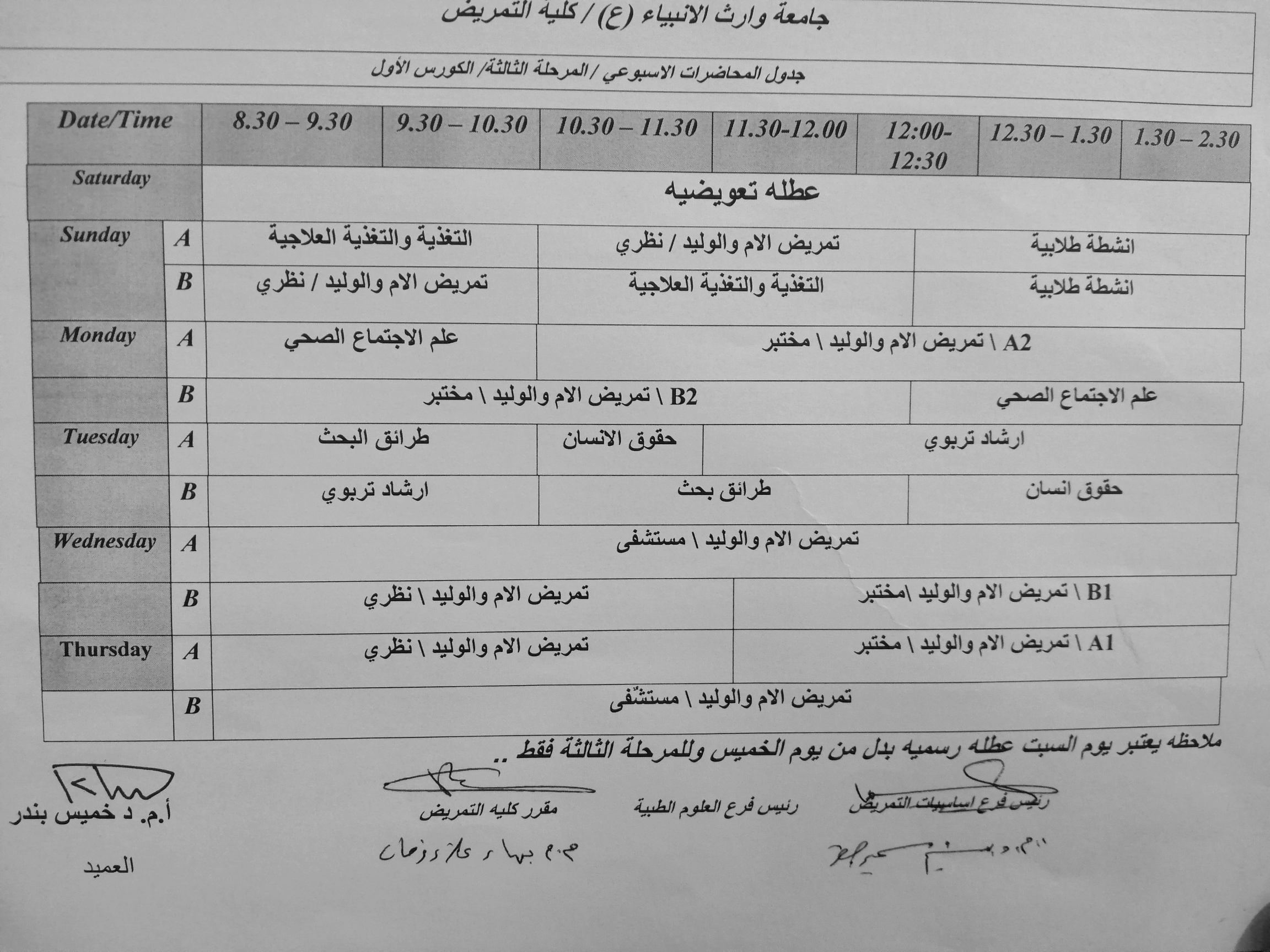 ستكون هنالك جولة تفقديه في المستشفى راجين من طلبتنا الاعزاء الالتزام بالحضور،