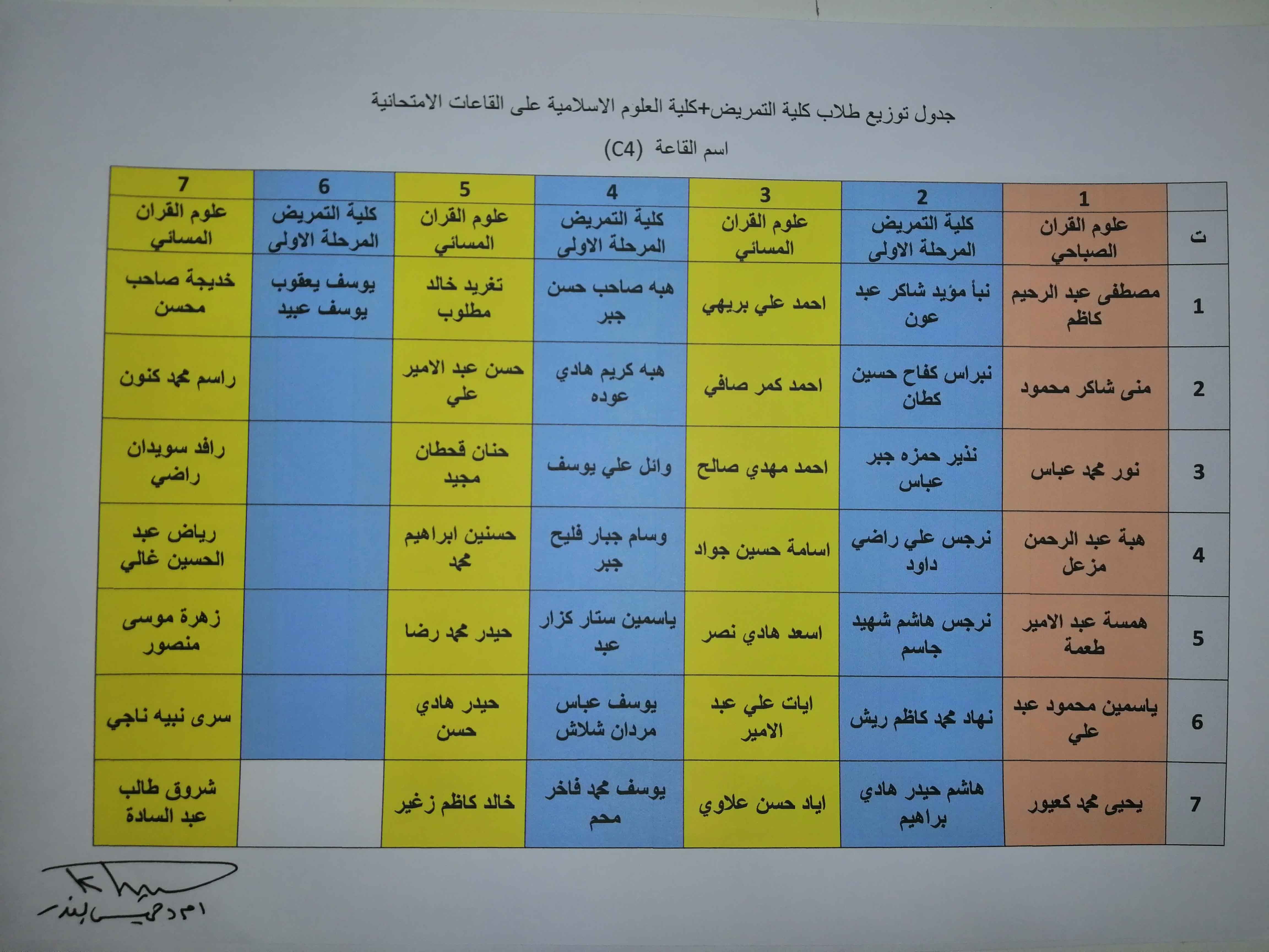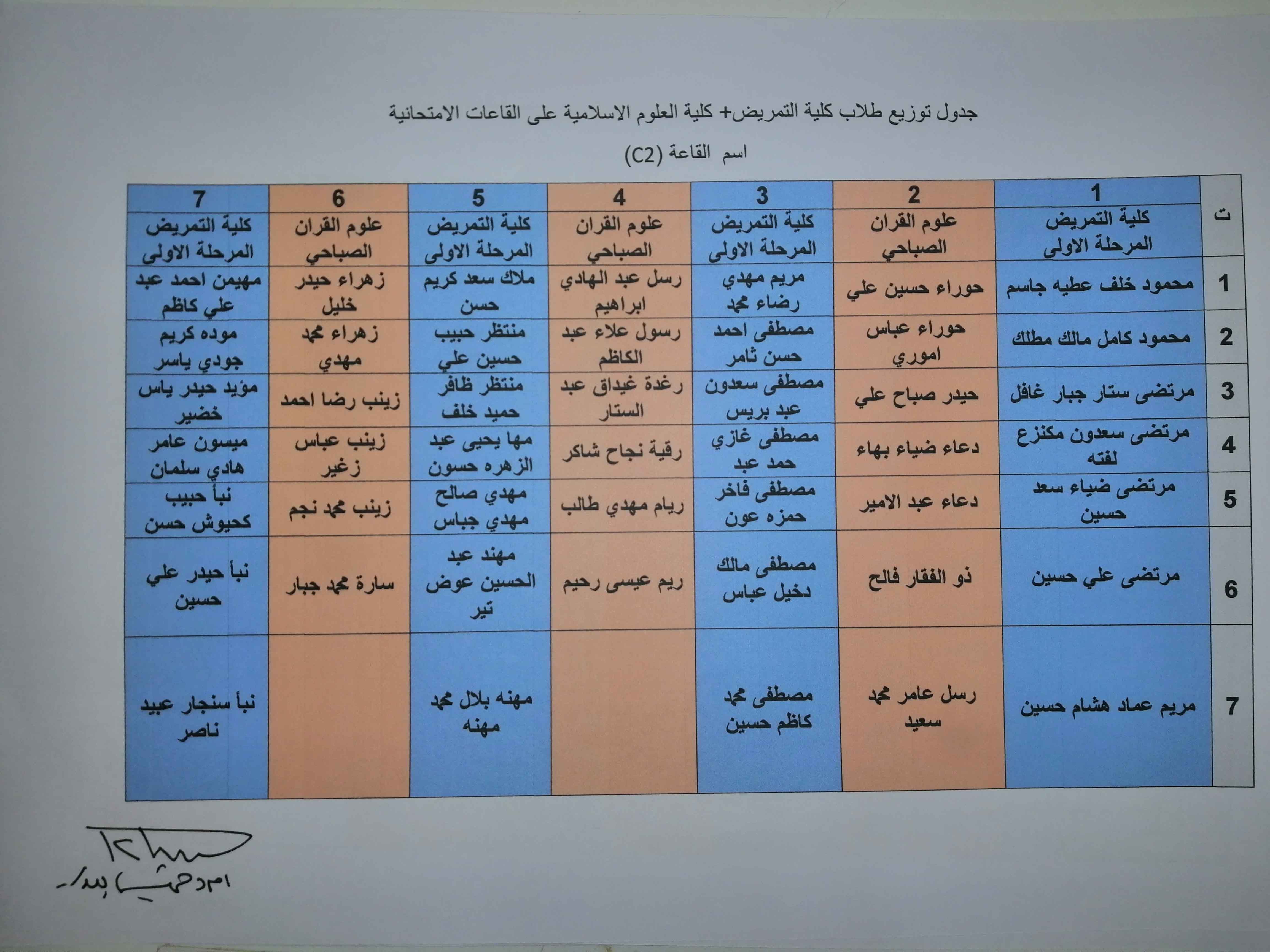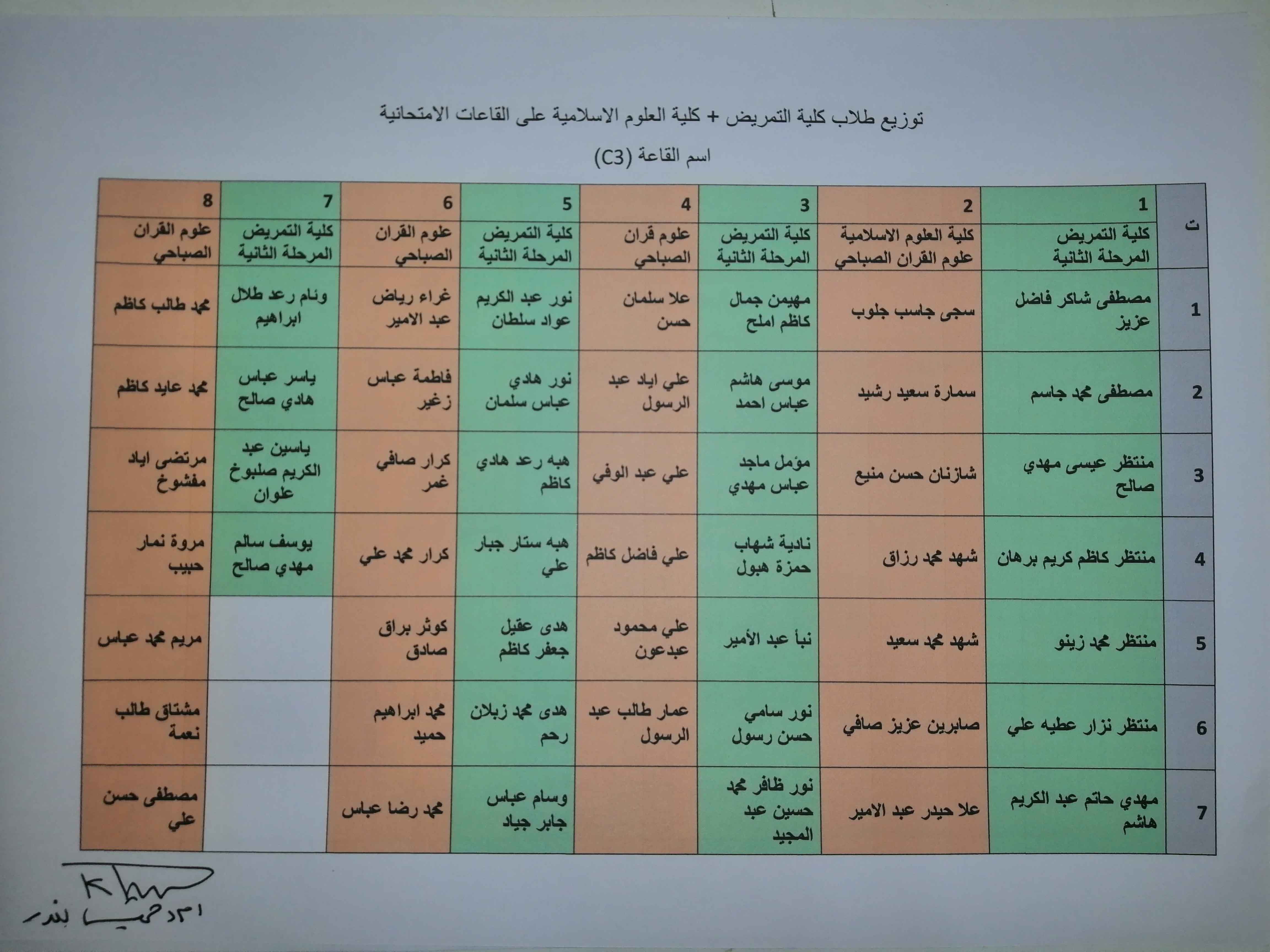 خارطة توزيع طلبة كلية التمريض وكلية العلوم الاسلامية على القاعات الامتحانية/الكورس الثاني /العام الدراسي ٢٠١٩/٢٠١٨