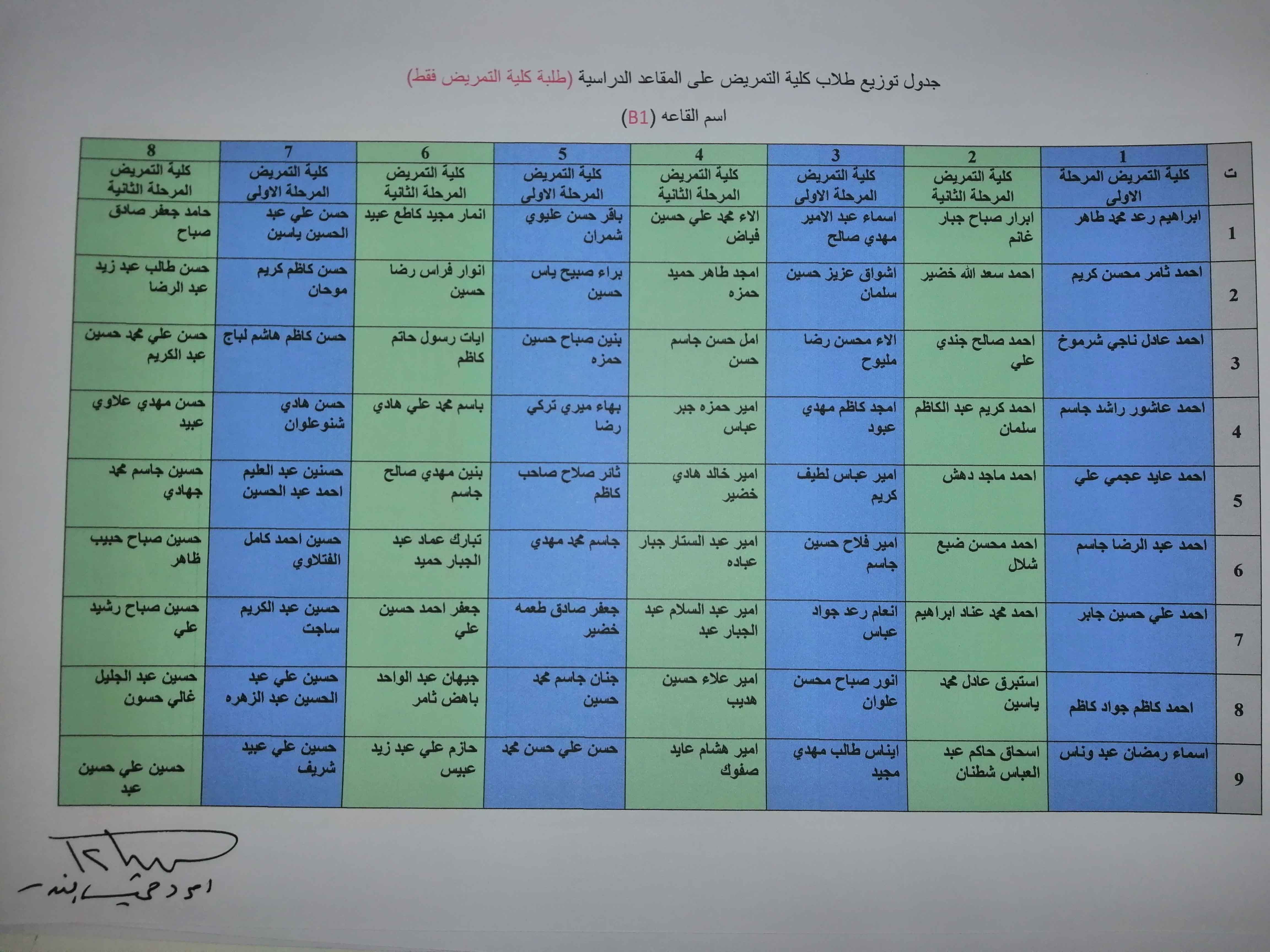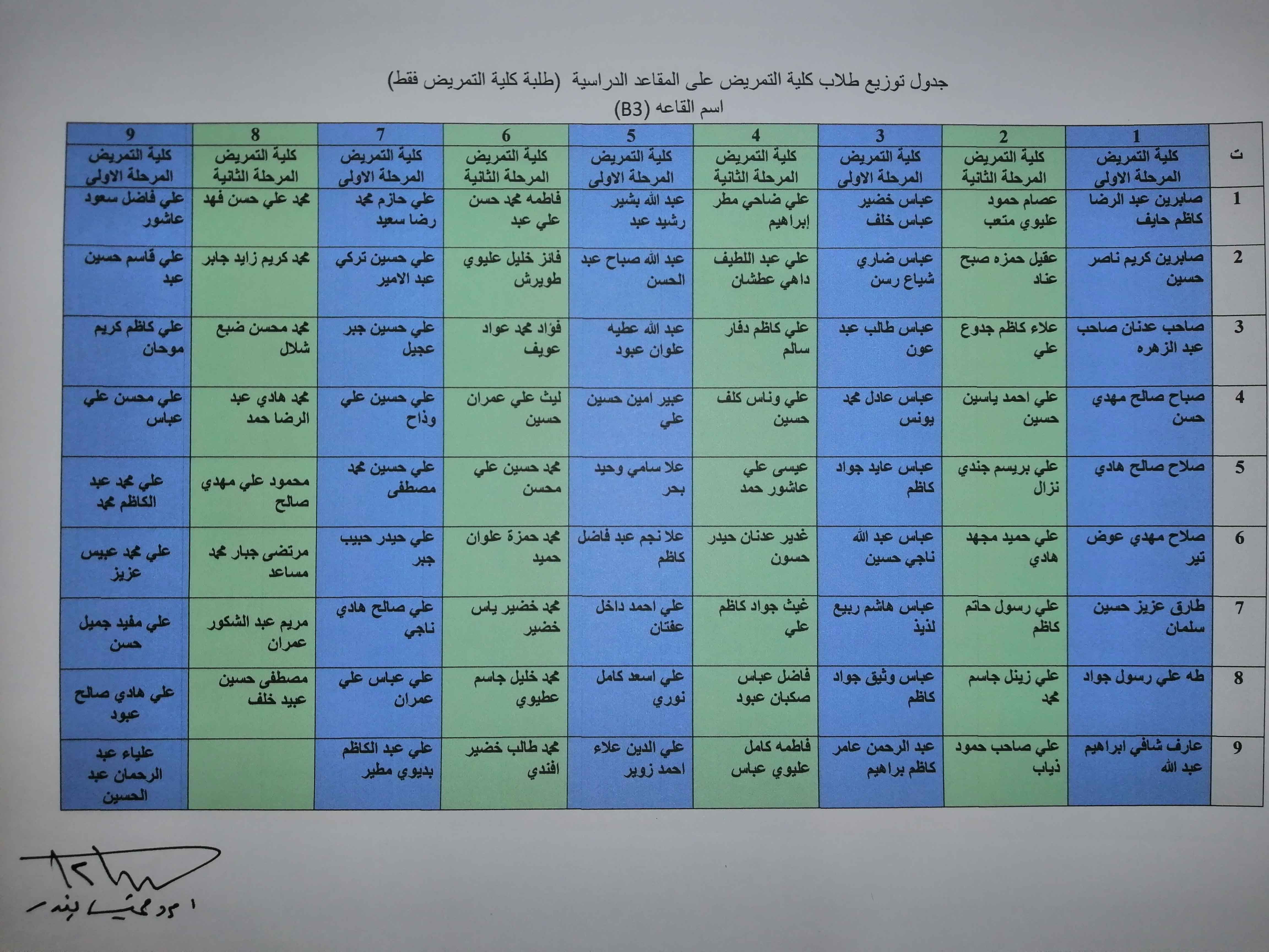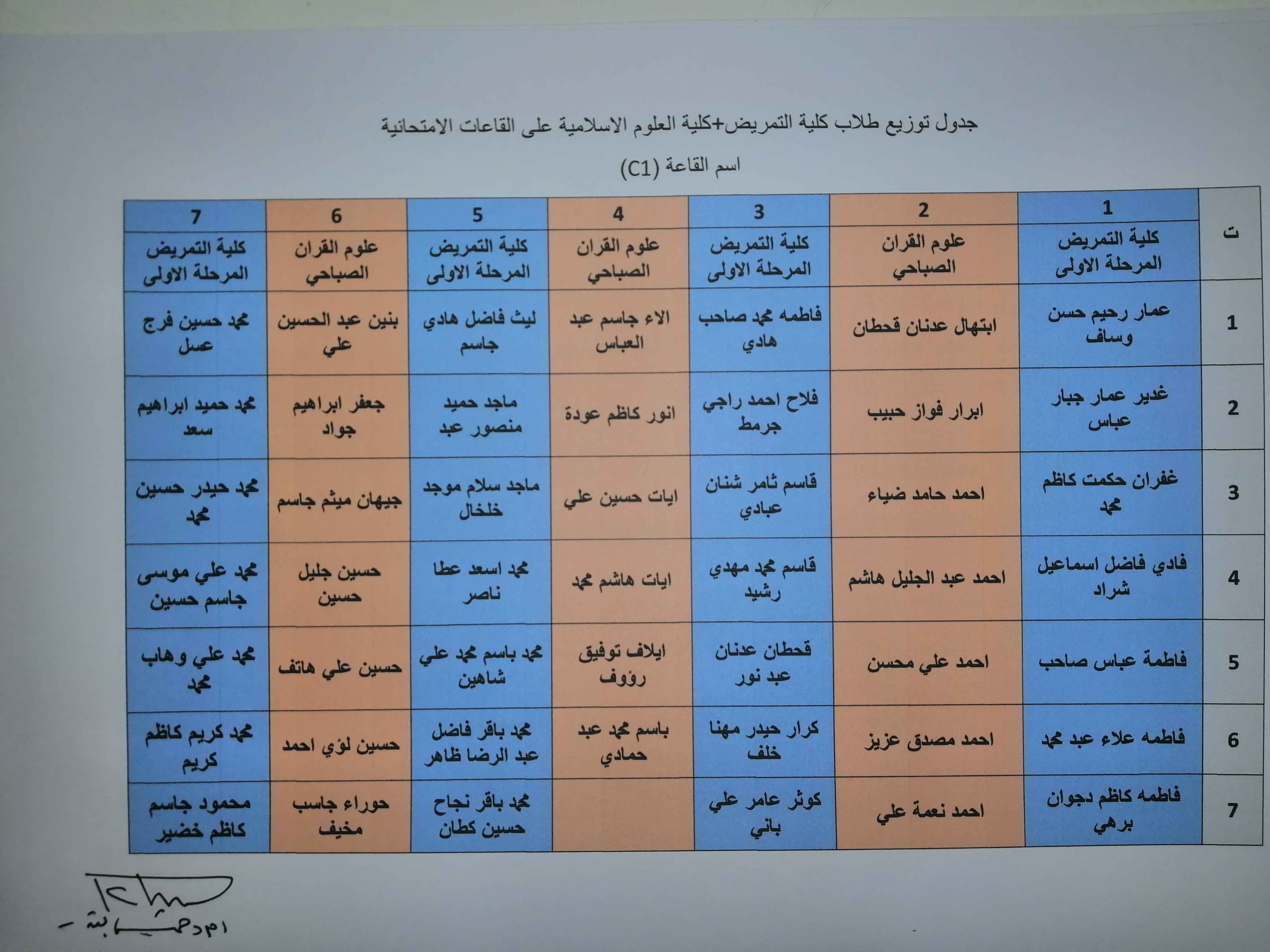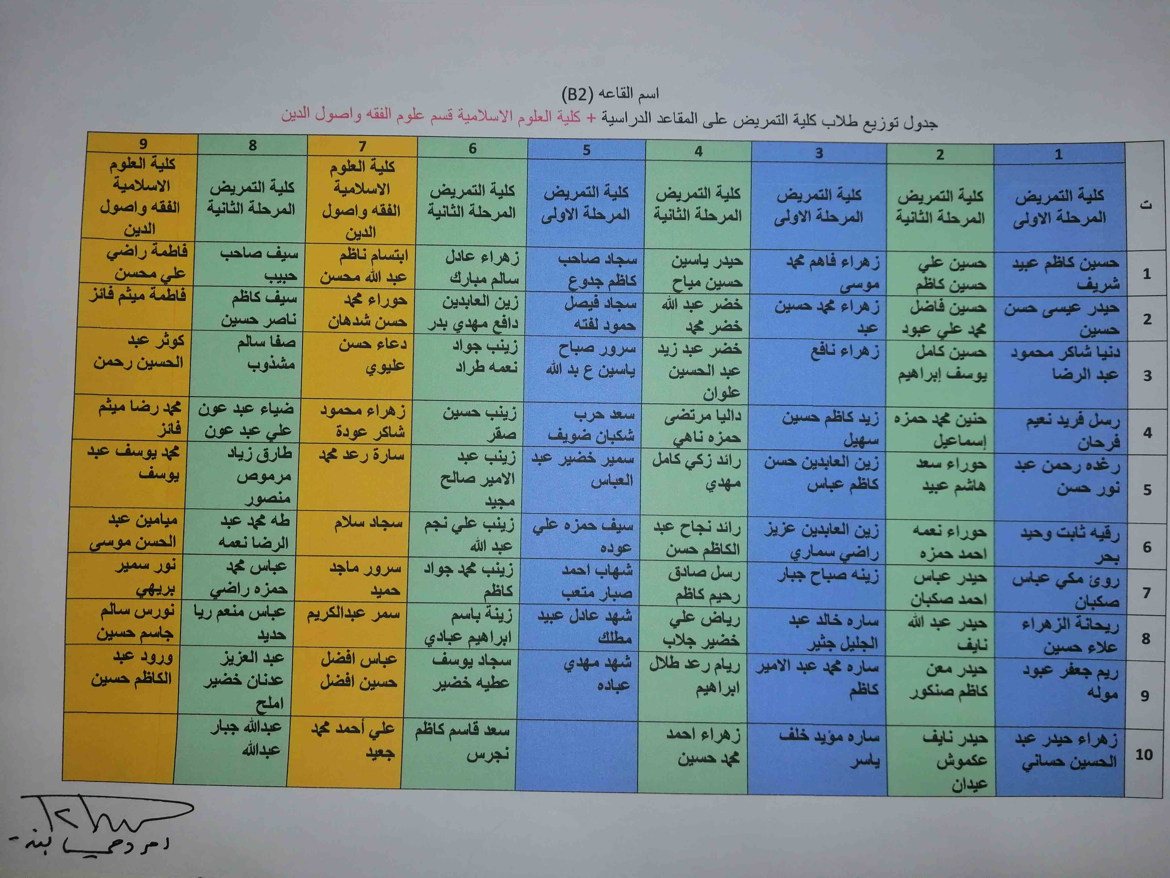 خارطة توزيع طلبة كلية التمريض وكلية العلوم الاسلامية على القاعات الامتحانية/الكورس الثاني /العام الدراسي ٢٠١٩/٢٠١٨