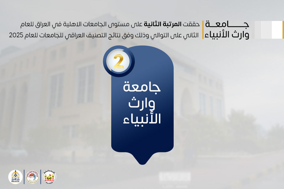 حققت جامعة وارث الانبياء (عليه السلام) انجازا اكاديميا جديدا بحصولها على المرتبة الثانية على مستوى الجامعات الاهلية في العراق للعام الثاني على التوالي وذلك وفق نتائج التصنيف العراقي للجامعات للعام 2025 الذي اعلنته وزارة التعليم العالي والبحث العلمي.