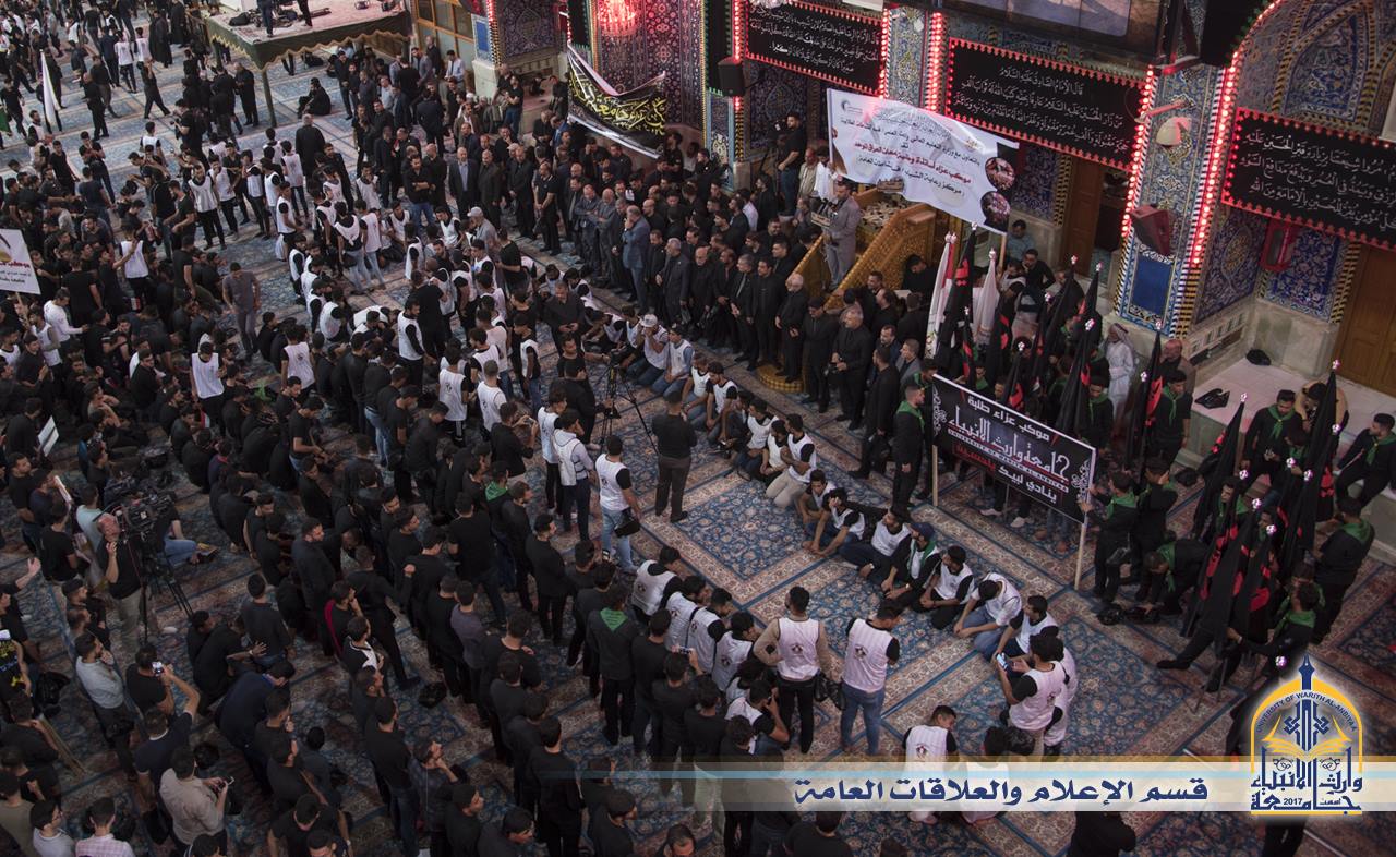 ترسيخا لنهج الامام الحسين عليه السلام في اصلاح الامة وايمانا من جامعة وارث الانبياء ان الشباب الواعي هم نواة المجتمع الصالح . شاركت جامعة وارث الانبياء مع جامعات العراق في موكب العزاء الذي اقامه مركز رعاية الشباب التابع للعتبة الحسينية المقدسة وعبر الاستاذ الدكتور طالب حسن الموسوي رئيس الجامعة عن حزنه والمه في هذه الذكرى الاليمة وهي ذكرى اربعينية الامام الحسين عليه السلام وجدد اساتذة وطلبة الجامعة العهد مع الامام الحسين عليه السلام وانهم على النهج سائرون
