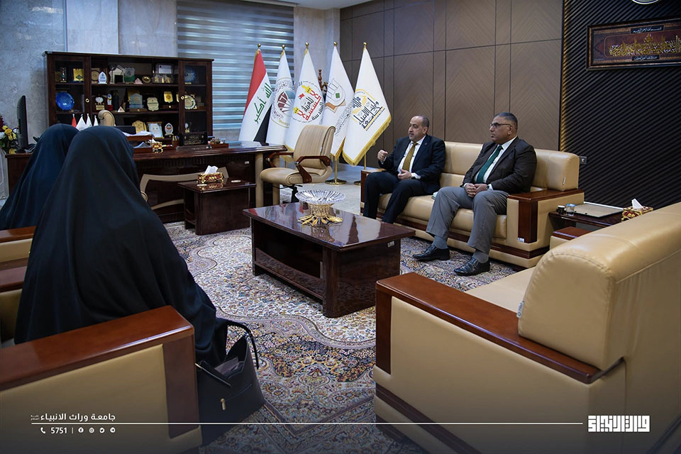 استقبل رئيس جامعة وارث الأنبياء (عليه السلام) الأستاذ الدكتور إبراهيم سعيد الحياوي وفداً من قسم التوجيه والإرشاد الأسري التابع للعتبة الحسينية المقدسة، لبحث آفاق التعاون في مجالات التعليم والبحث والتدريب.
