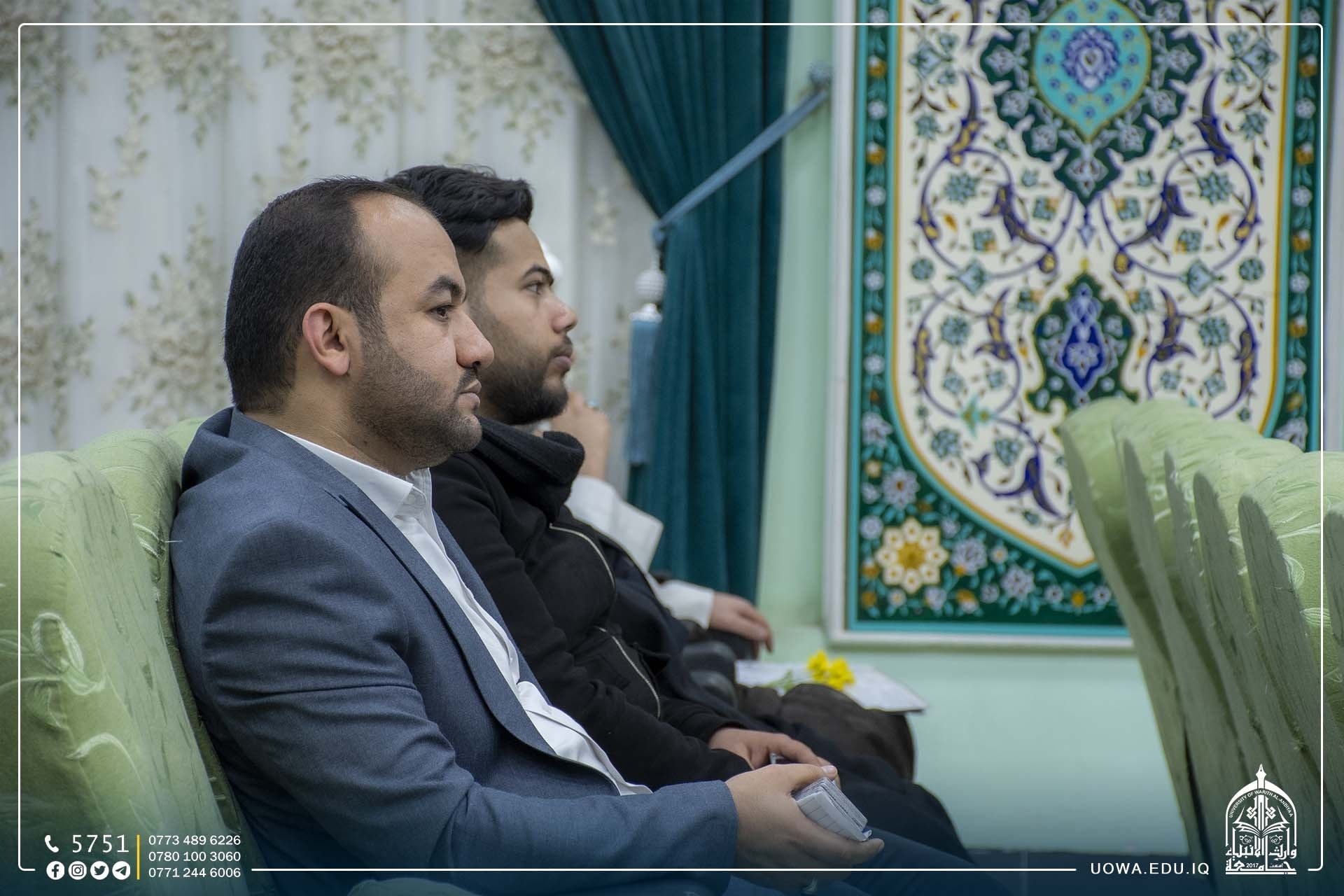 بحضور مساعد رئيس الجامعة للشؤون العلمية الاستاذ الدكتور عباس الدعمي وعميد كلية الهندسة الاستاذ الدكتور واقد الموسوي، والاستاذ محمد الكناني رئيس قسم تطويرالموارد البشرية / مركز رعاية الشباب بالعتبة الحسينية المقدسة.