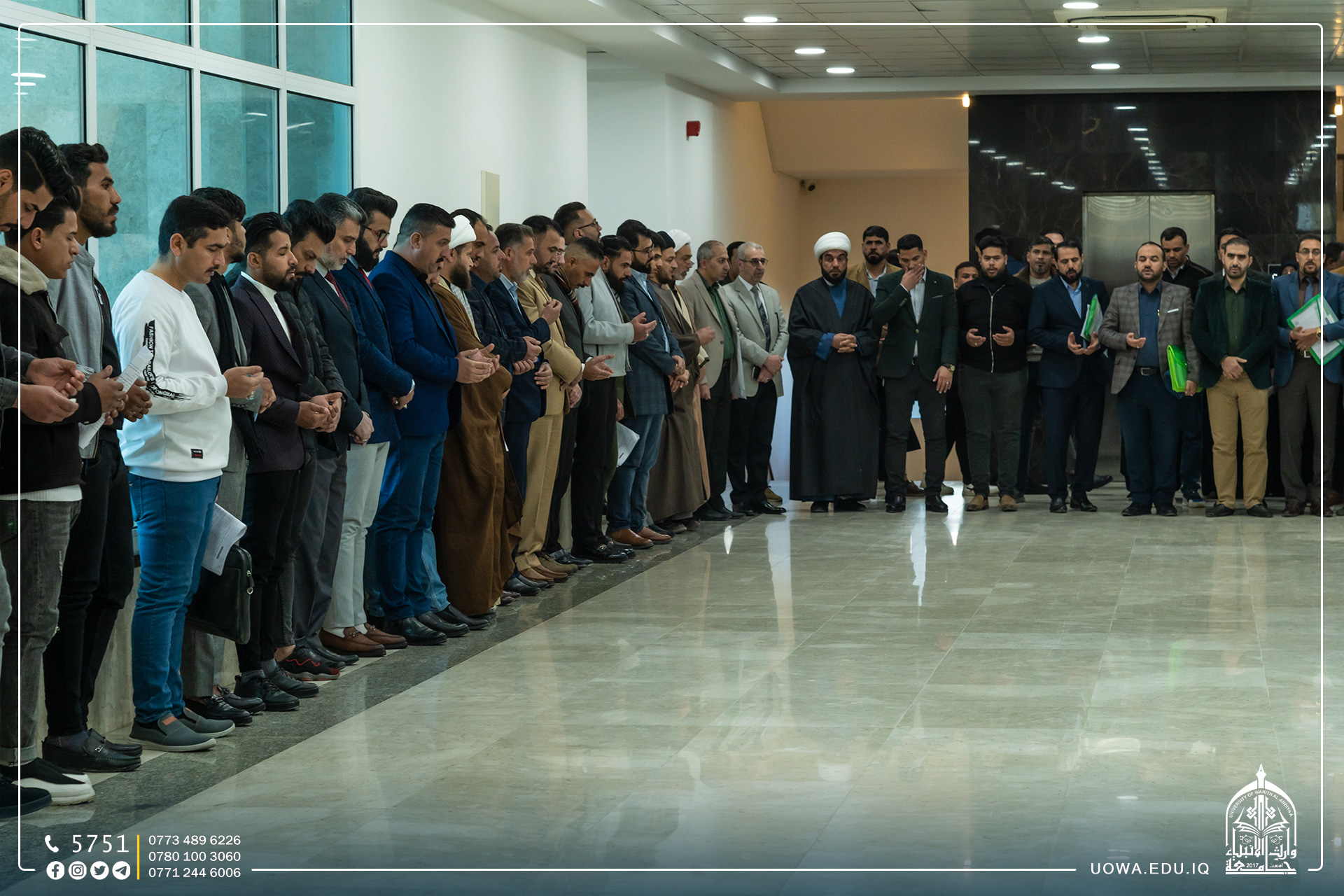 عمادة وطلبة كلية العلوم الاسلامية ينظمون وقفة حداد لقراءة سورة الفاتحة على روح الفقيدة ( حلا عزيز عبيد )، الطالبة في المرحلة الرابعة، سائلين الله (عز وجل) ان يتغمدها برحمته الواسعة، ويلهم ذويها الصبر والسلوان.