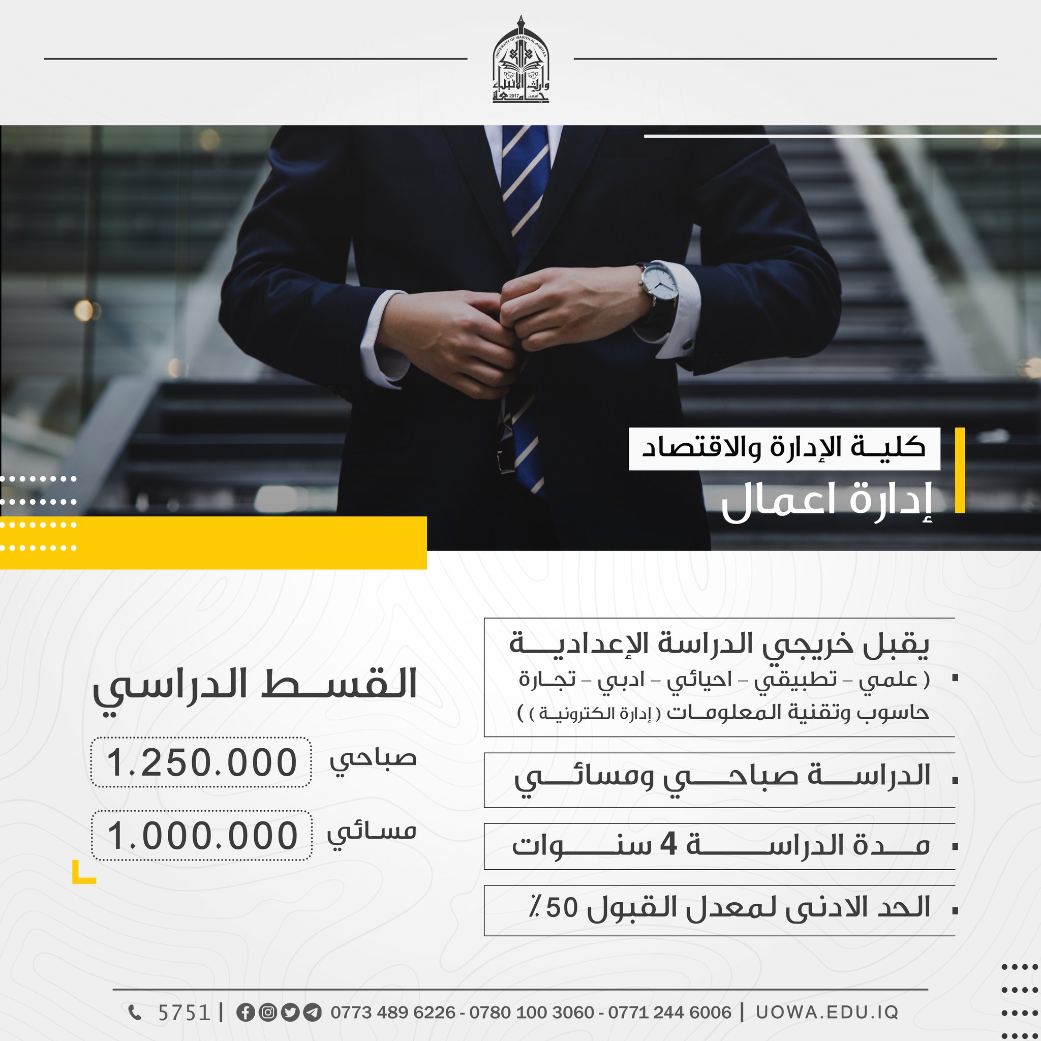 برعاية ودعم مبارك من المتولي الشرعي للعتبة الحسينية المقدسة ،سماحة الشيخ عبد المهدي الكربلائي ( دام عزه) جامعة وارث الانبياء(عليه السلام) تخفض الاجور الدراسية لكليات واقسام الجامعة وبنسبة 50% للإسهام في دعم المسيرة العلمية في بلدنا العزيز ولتحقيق طموح الطلبة الاعزاء بالدراسة الاكاديمية.