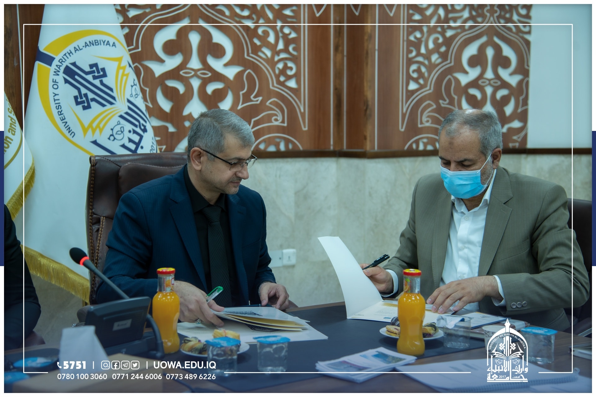 رئيس جامعة وارث الانبياء يلتقي بوفد نقابة الاكاديميين العراقية
