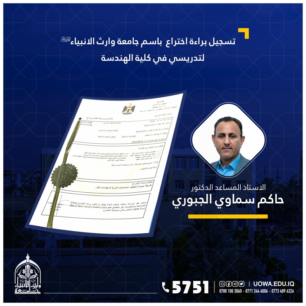 تسجيل براءة اختراع لجامعة وارث الانبياء