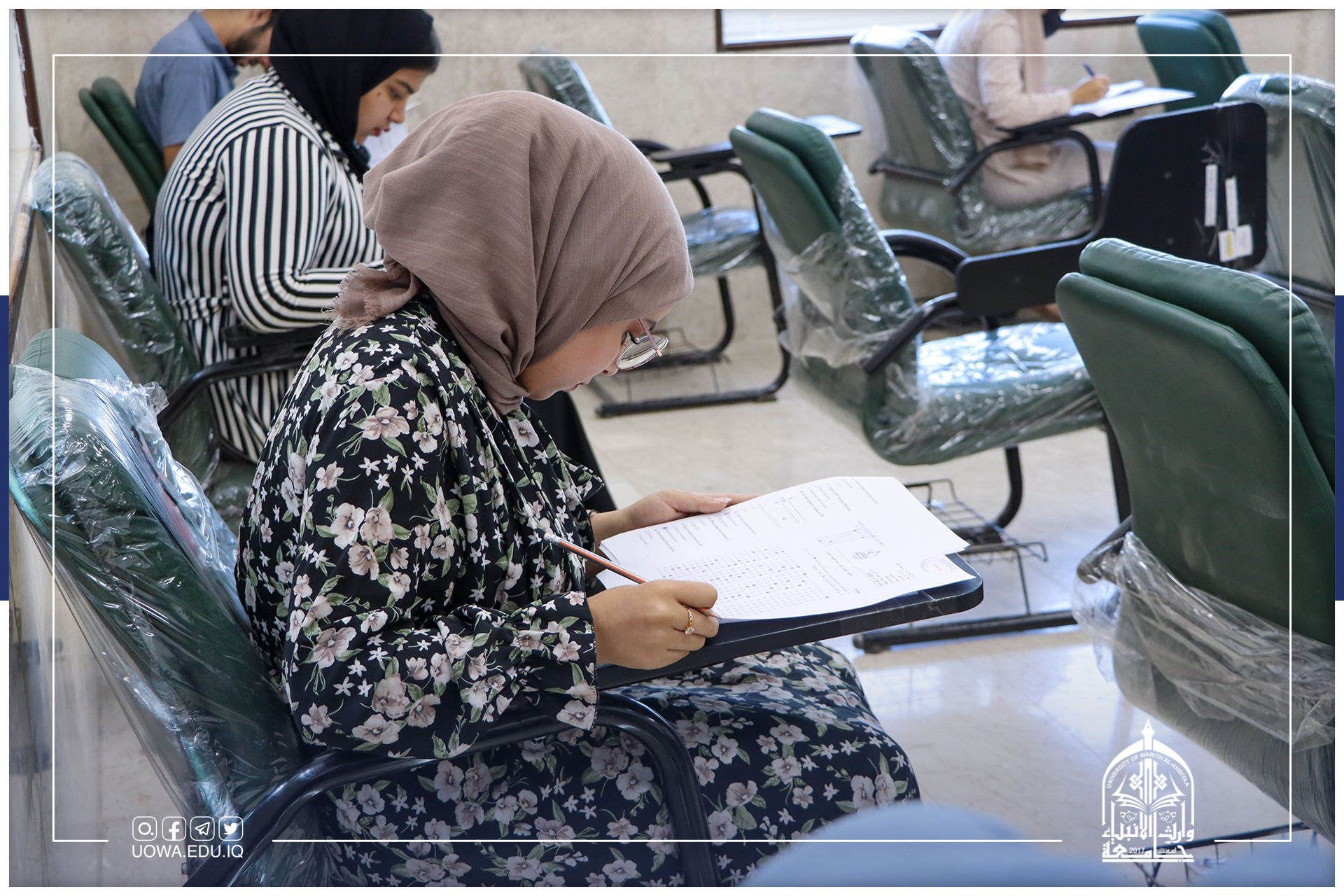 على مشارف الانتهاء، طلبة كليات وأقسام جامعة وارث الانبياء (عليه السلام) يؤدون امتحاناتهم النهائية بانسيابية عالية.امنياتنا لجميع طلبتنا الاعزاء بالموفقية والنجاح