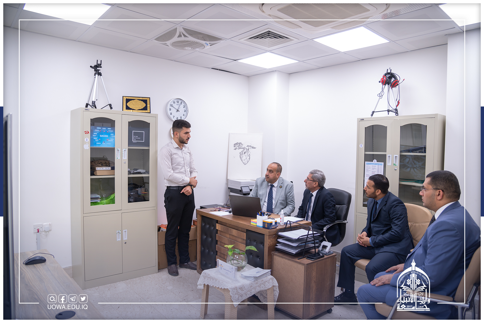 يذكر أن العديد من السادة التدريسيين والعمداء في جامعة وارث الانبياء(عليه السلام) يتم اختيارهم بصفة رئيس أو عضو في لجان مناقشة اطروحات الدراسات العليا لكفاءتم العلمية .