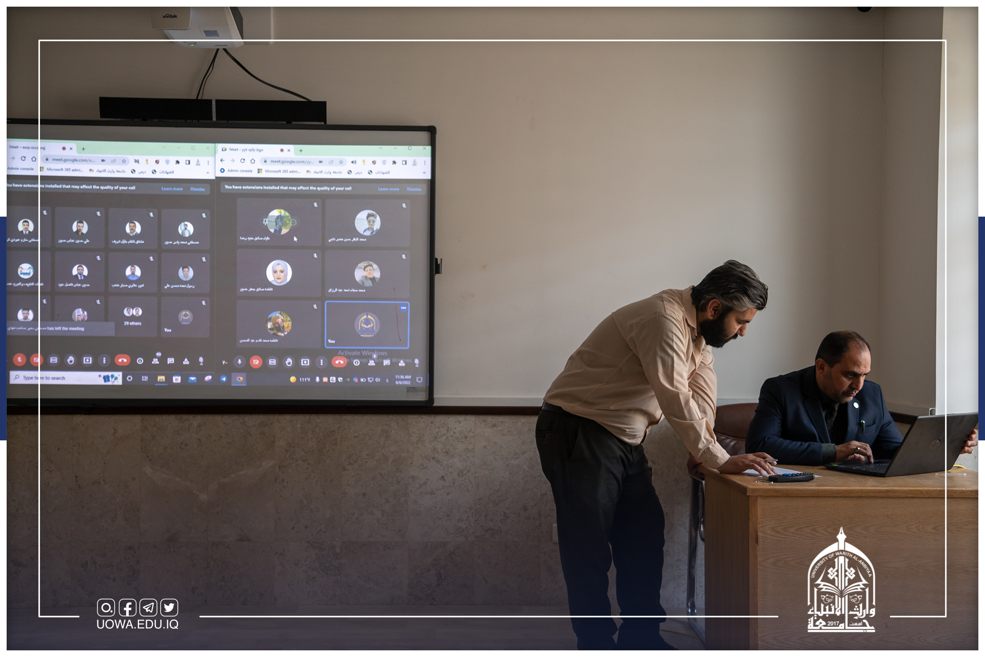 يقيم مركز التعليم المستمر في جامعة وارث الانبياء (عليه السلام) بالتعاون مع كلية الادارة والاقتصاد دورة تدريبية بعنوان "آليات التدريب الصيفي"، والقائمين بالدورة السادة:- م.د نضال عبدالله ياسين المالكي (مديراً ومحاضراً)- م.د. حسين محمد علي كشكول (مقرر قسم ادارة الاعمال محاضراً)- م.م سليم رشيد عبود (قسم المحاسبة محاضراً)- السيد مهند الجبوري (مقرراً ومحاضراً)اعتبارا من يوم السبت الموافق 6/18/ 2022 ولمدة ثلاثة أيام وتقام الكترونياً على منصة Google Meet وفي تمام الساعة 9:00 مساءً.