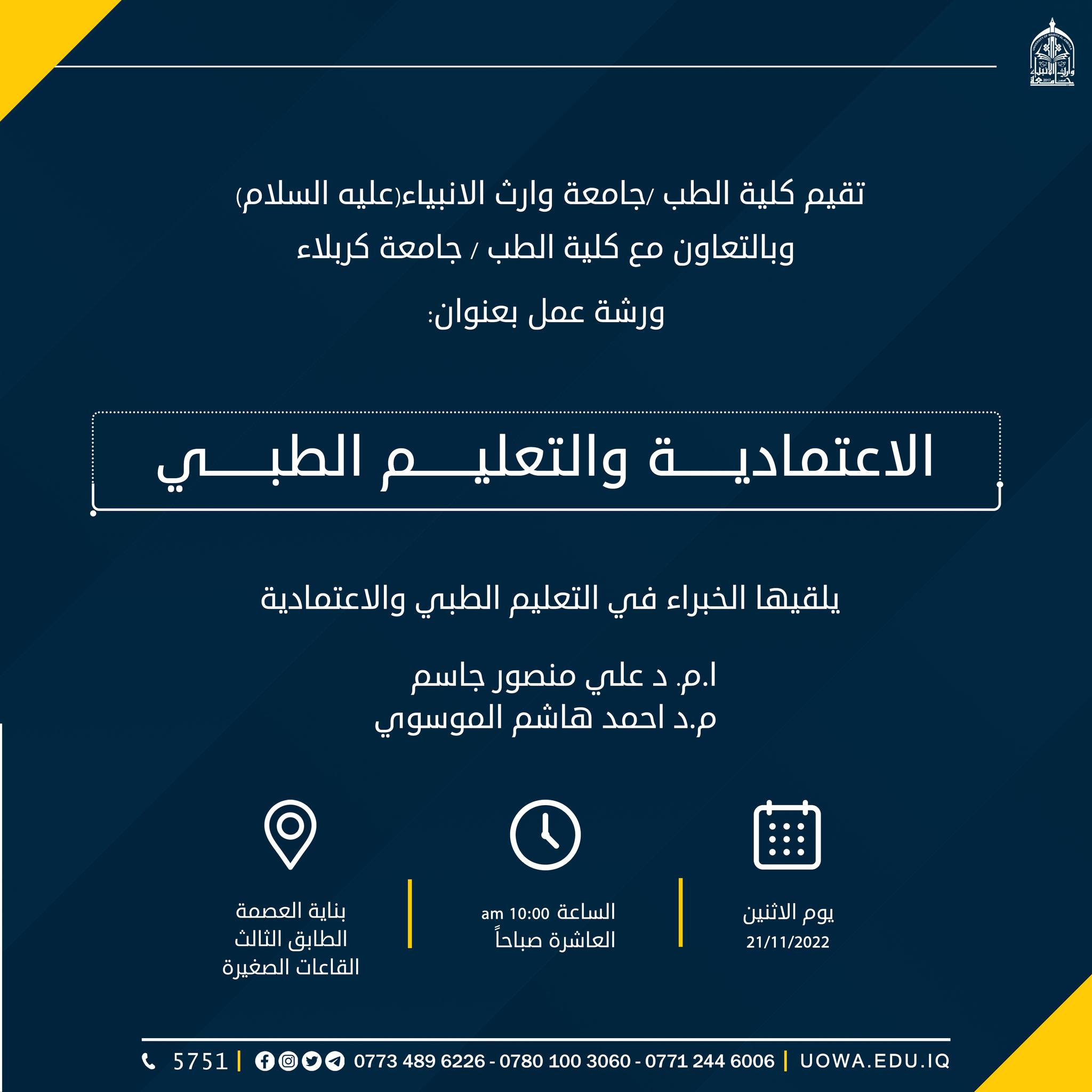 الموافق (3/12/2022) وذلك على قاعة الورش في كلية الطب.