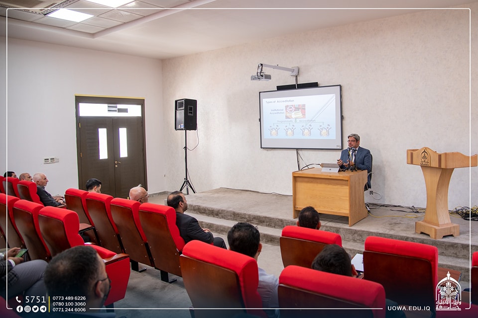 برعاية السيد رئيس الجامعة الاستاذ الدكتور ابراهيم سعيد الحياوي، أقام قسم ضمان الجودة والاداء الجامعي ورشة عمل بعنوان (معايير الاعتماد الهندسي) ألقاها ا.م.د. علي ناجي عطية عضو المجلس العراقي لاعتماد التعليم الهندسي، إذ تضمنت الورشة مناقشة معايير الاعتماد الهندسي الوطني وسبل تطوير ادارة البرامج الدراسية بما يحقق متطلبات سوق العمل وفقا للمعايير العالمية.