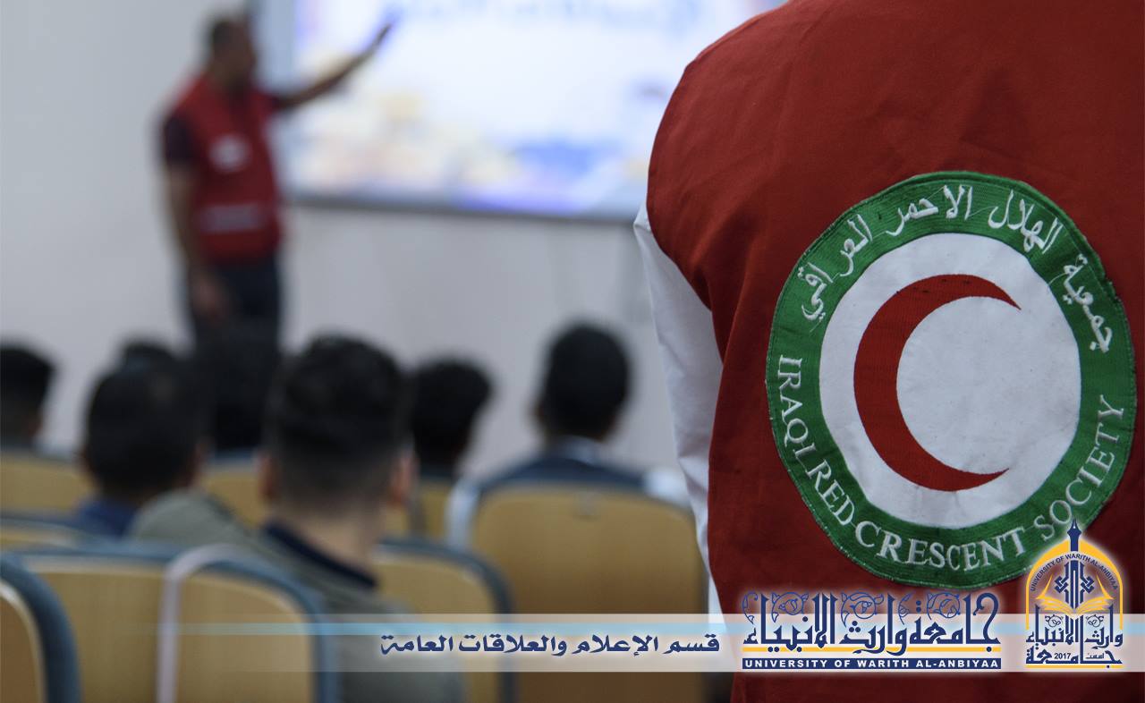 حرصا على تفعيل الخدمة التطوعية ودعم العمل التطوعي جامعة وارث الانبياء وبالتعاون مع جمعية الهلال الاحمر العراقية فرع كربلاء المقدسة تقيم ورشة عمل للاسعافات الاولية لطلبة الجامعة، وقال مدرب جمعية الهلال الأحمر صباح الهلالي ان ورشة العمل تضمنت عملية تثقيف بمبادئ الهلال الاحمر والية العمل وكيفية المساعدة في الحالات الاولية للمصاب، واضاف قائلا انه كان هناك تعاون عالي من قبل الجامعة والطلبة وحماس في بذل انفسهم ووقتهم للعمل التطوعي وسيكون هناك برامج مكثفة في الايام القادمة حول كيفية التعامل مع المصاب واسعافه بصورة الصحيحة.