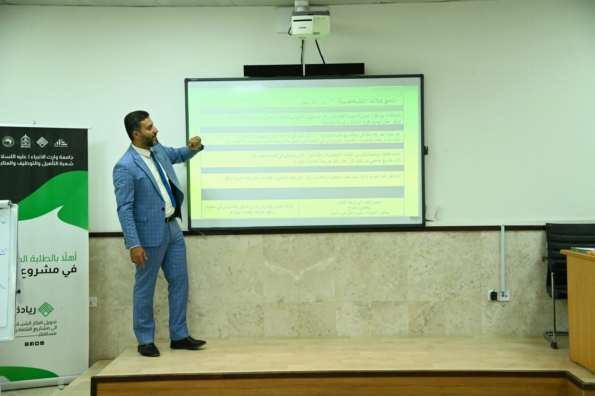 استمرار الدورات التدريبية التي تقيمها جامعة وارث الأنبياء/ شعبة التأهيل والتوظيف  ضمن مبادرة"ريادة" الحكومية التي تهدف إلى دعم مشاريع الطلاب والخريجين ،بمشاركة المدرب صفاء السيلاوي، على مدار أسبوعين في الشهر.