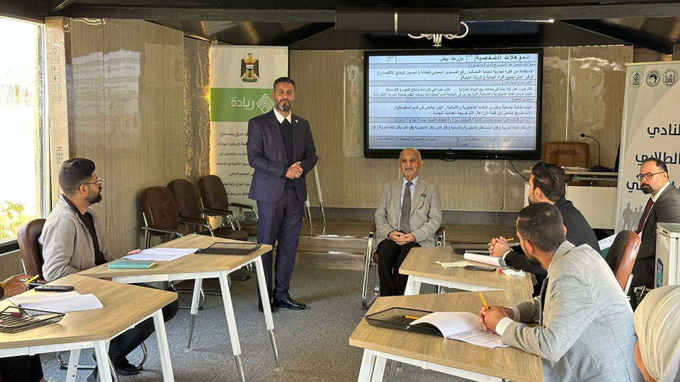 In alignment with the United Nations Sustainable Development Goals (SDGs), particularly Quality Education (SDG 4), Decent Work and Economic Growth (SDG 8), and Industry, Innovation, and Infrastructure (SDG 9), Prof. Dr. Nofal Al-Aaraji, Vice President of the University for Administrative Affairs, visited the Student Cultural Centre to engage with trainees participating in the ministerial "Riyada" initiative supported by the university.
