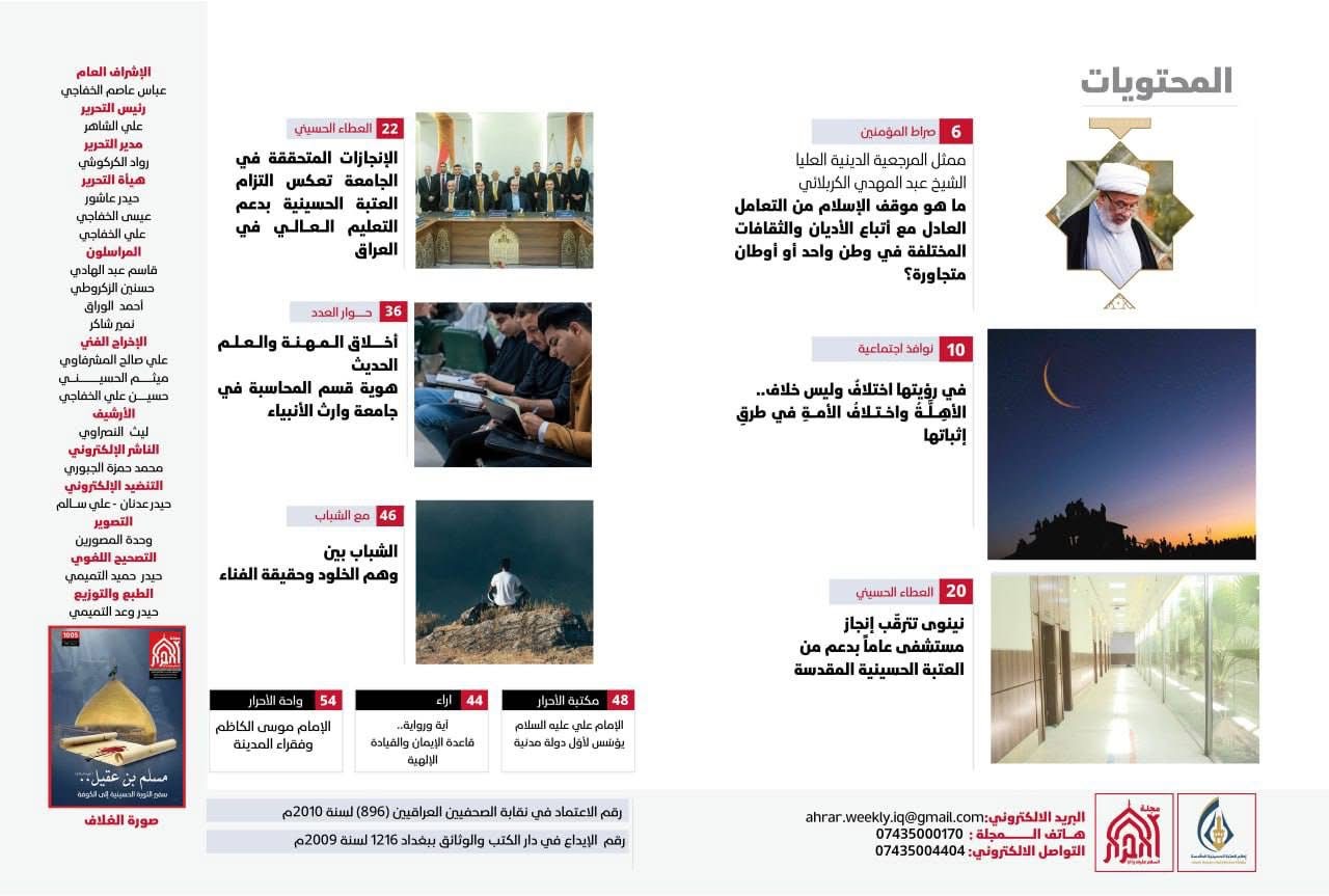 Al-Ahrar Magazine, published by the Publishing Division of the Media Department at the Holy Hussayniya Shrine, featured an insightful interview conducted by colleague Hawraa Masri, a second-year student in the Digital Media Department, with Dr. Hebatallah Mustafa Al-Sayyid, Head of the Accounting Department.