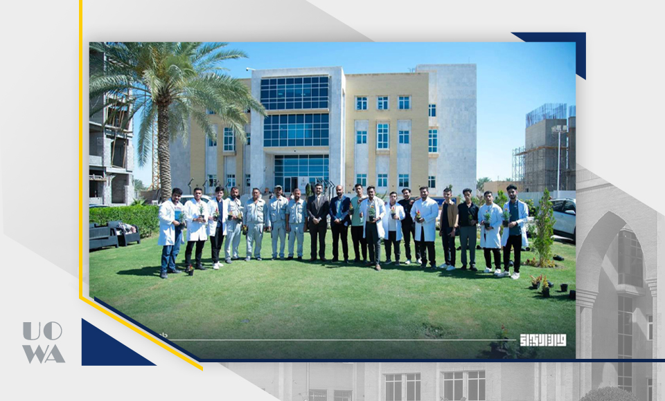 In a scene that reflects a spirit of cooperation and belonging, a number of students and faculty members from the College of Medicine at Warith al-Anbiya University (peace be upon him) participated in a campaign organized by the Decoration and Landscaping Division of the Diwan Affairs Department to plant several green spaces on campus.