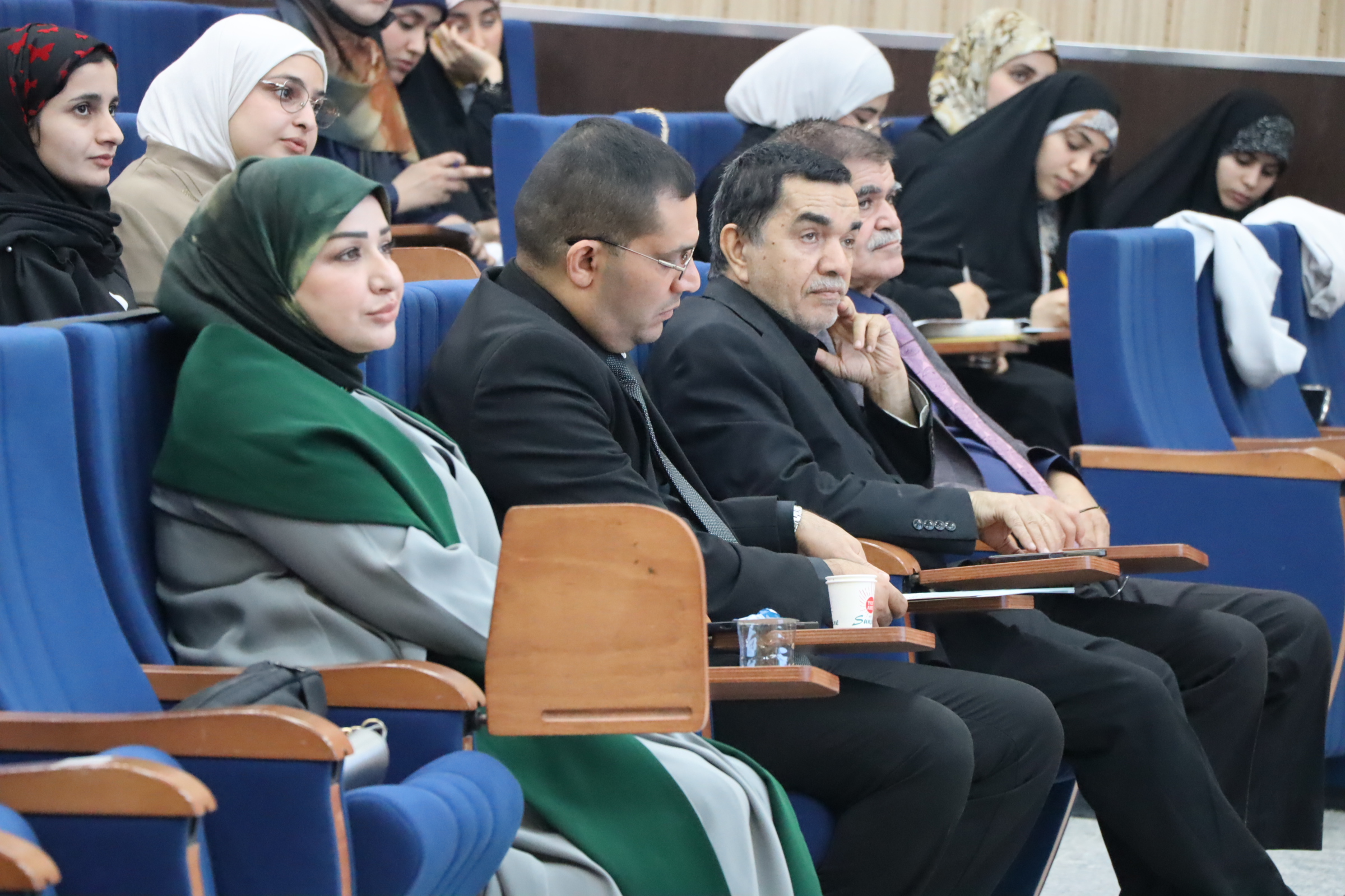The symposium was delivered by Mr. Ali Nouri Hassoun from the Department of Media and Public Relations at the Al-Hussaini Shrine. The session focused on how to operate design programs, their integration into digital media, and their direct influence on society. The event included many discussions and interactions by the attending professors and students.