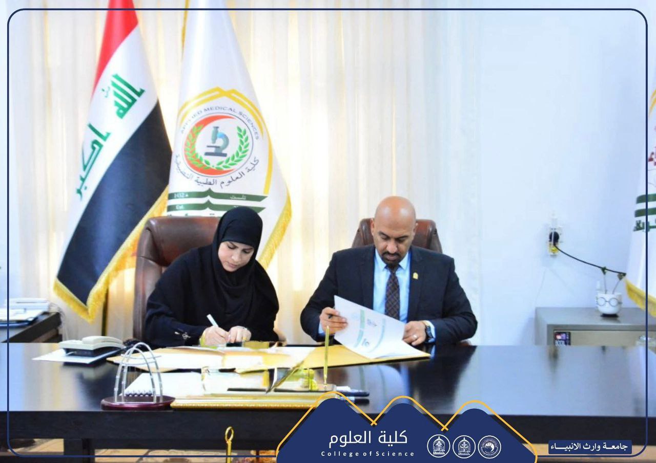 With God's grace, a memorandum of understanding was signed between the College of Medicine at Warith Al-Anbiya University (peace be upon him) and the Mercy Organization for Child Health, in the presence of Professor Dr. Ali Abdul Saadoun Al-Ghazi, Dean of the College, and Dr. Iman Rashid Al-Obaidi, Head of the Organization.