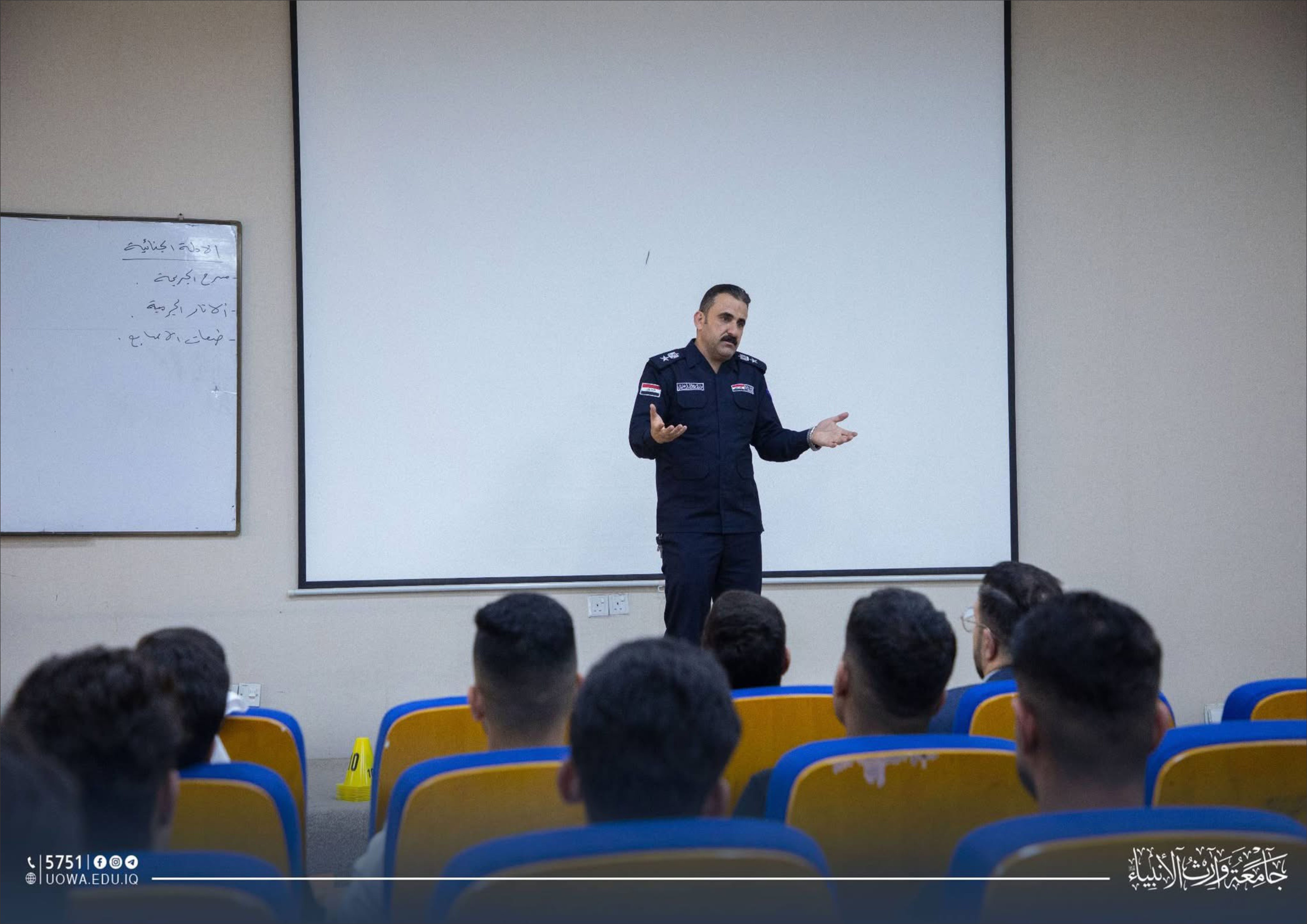 The College of Science / Department of Forensic Evidence organized a specialized scientific workshop entitled “Preserving the Crime Scene,” delivered by Lieutenant Colonel Haider Abdul Hamza Al-Fatlawi, with the attendance of a number of faculty members and students of the department.