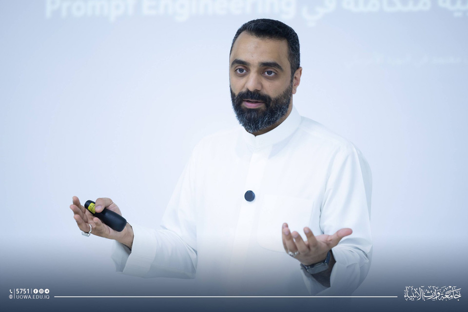 The College of Modern Technologies organised a specialised training course entitled “Prompt Engineering in Artificial Intelligence”, targeting students from the Departments of Robotics Engineering, Artificial Intelligence Engineering, and Digital Health Technologies, alongside the participation of Artificial Intelligence students from the College of Computer Science and Information Technology. The course was delivered by Mr Ahmed Al-Siddiq.
