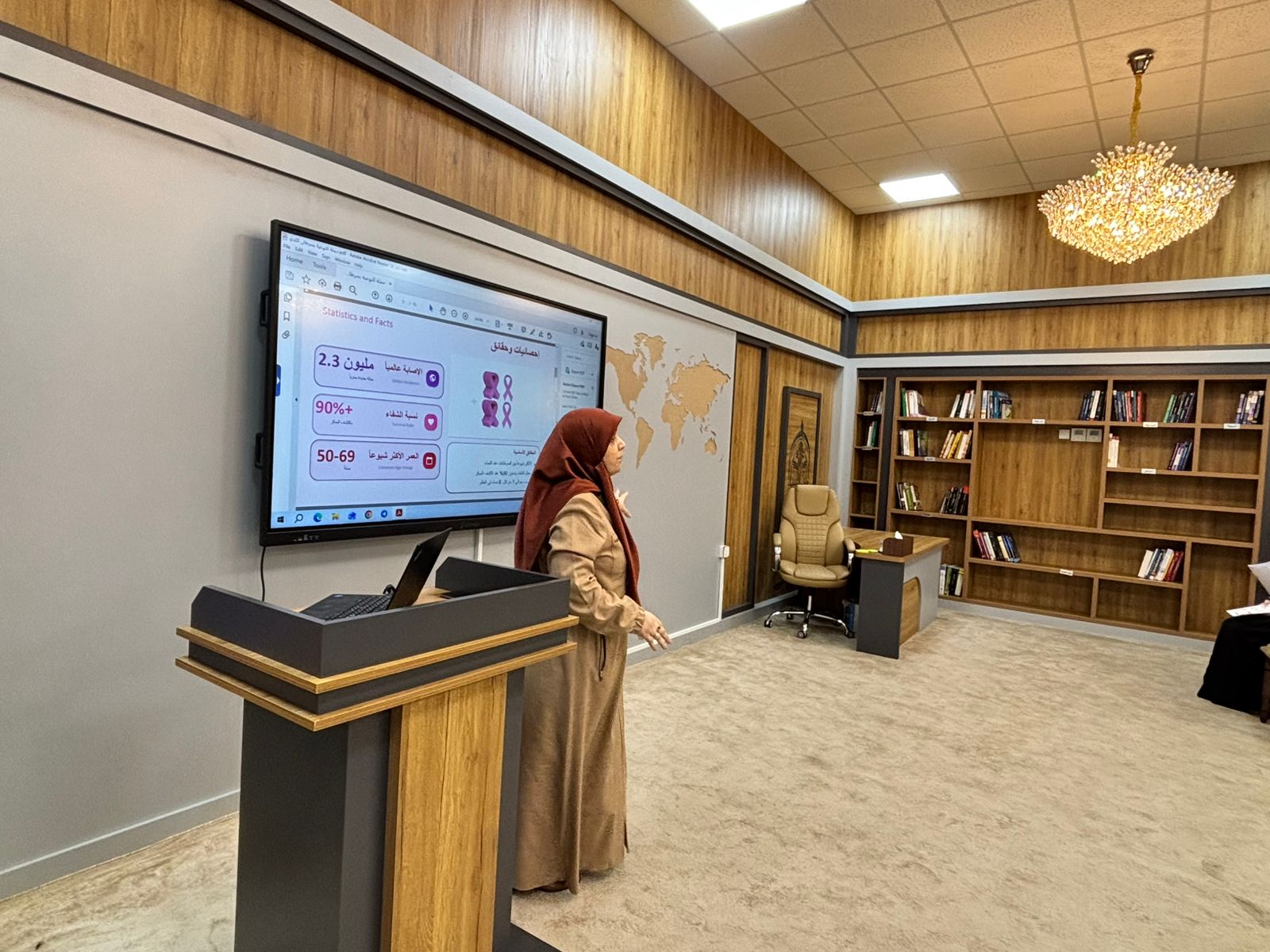 Under the supervision of Asst. Prof. Dr. Fatima Mutashar Al-Thuwaini, the workshop aimed to emphasize that a woman’s health literacy is her first line of defense. The session focused on explaining practical steps and identifying physical symptoms that require immediate medical consultation to ensure the highest possible recovery rates.