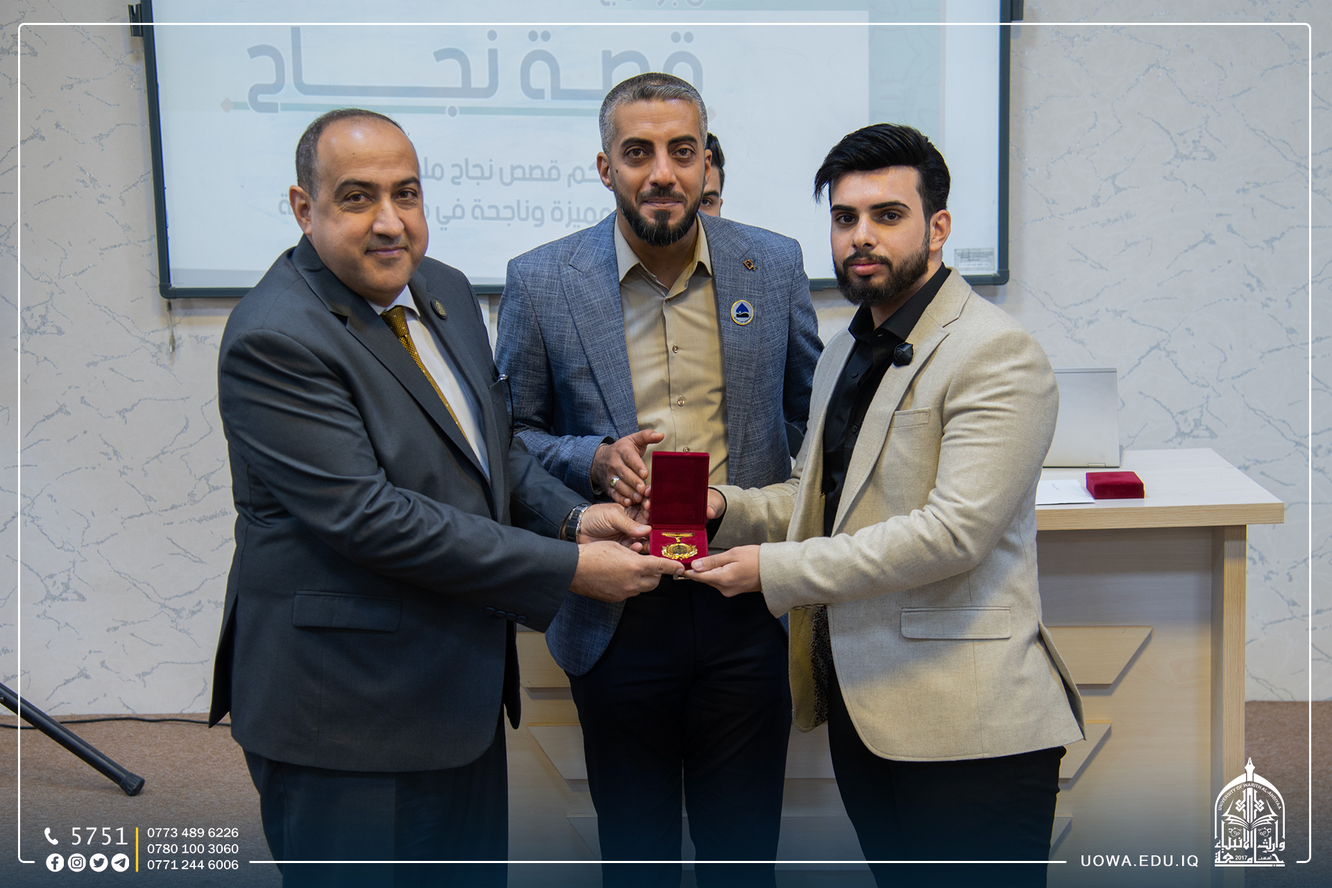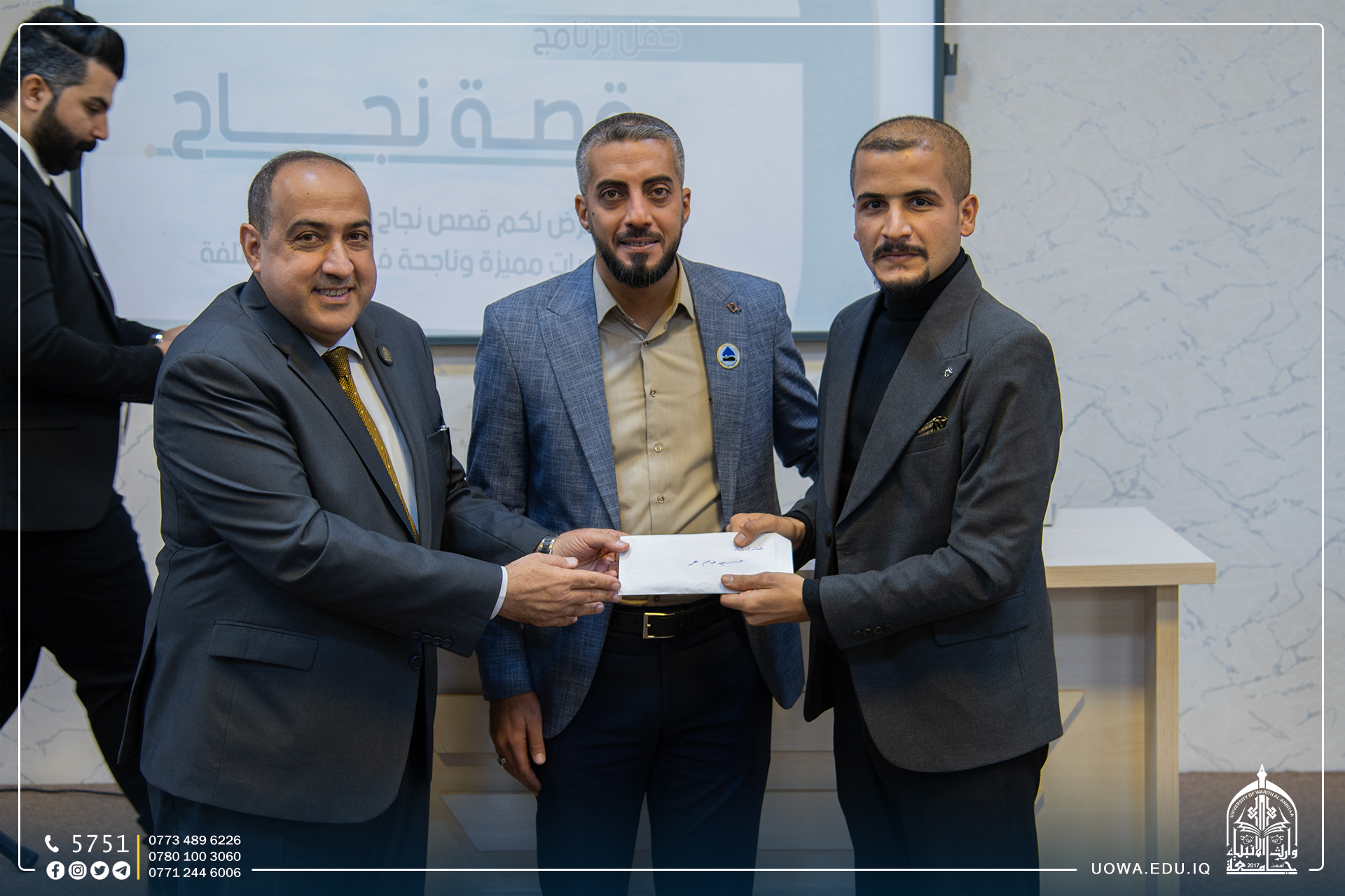 In the presence of Mr. Ibrahim Al-Hayawi, the President of the University, the Department of Student Activities at the University of Warith Al-Anbiyaa (peace be upon them) is organizing an event to honor the university students who have excelled in the "Success Story" program. The program was conducted in collaboration with the Youth Care Center in the Department of Human Resources Development at the Holy Shrine of Imam Hussain.