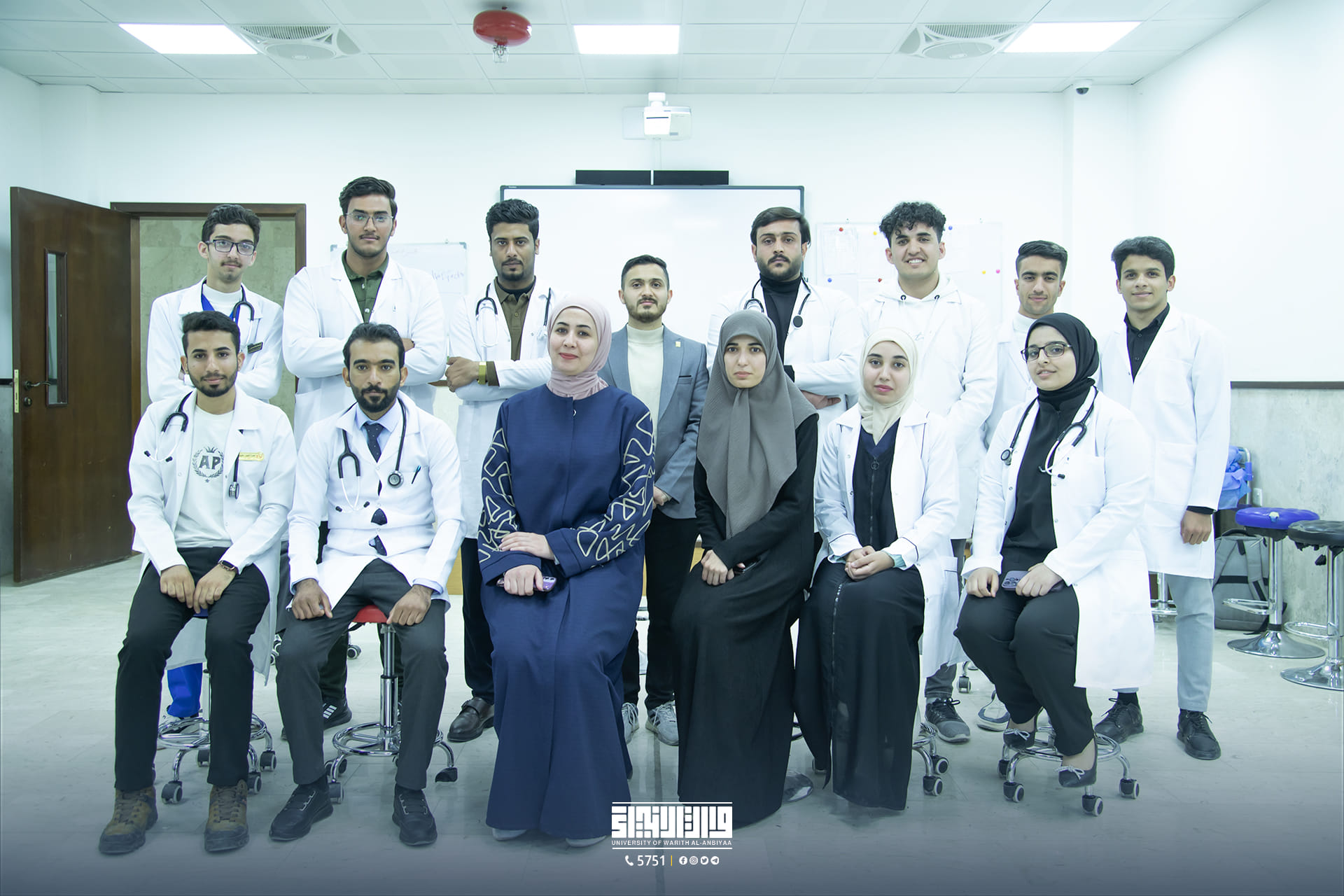In the presence of the Dean of the College, Professor Dr. Ali Abd Saadoun, the College of Medicine at the University of Warith Al-Anbiyaa (Peace be upon him), in collaboration with the Health Department at the Holy Shrine of Imam Hussain, organized the "Intensive Training Course for Medical Units during the Blessed Shaabanian Pilgrimage." The course was attended by a number of students from the College of Medicine and the College of Nursing who volunteered to serve the visitors coming to the holy city of Karbala.