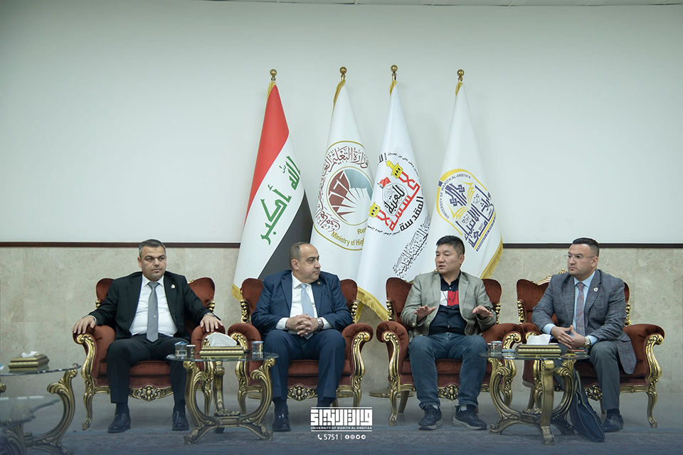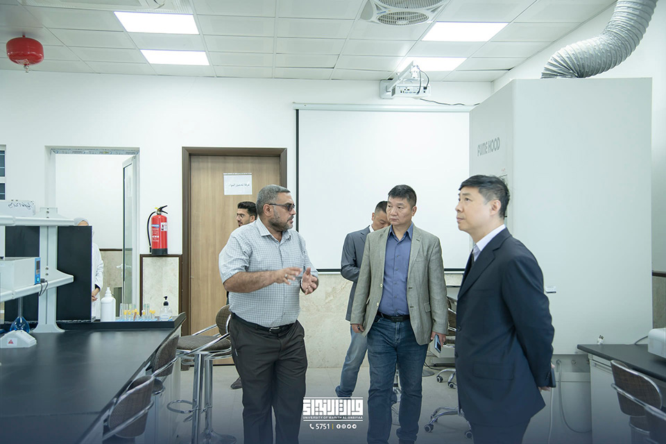 Within the framework of scientific and cultural communication between universities, a delegation from the Chinese University of Nanjing visited the University of Warith Al-Anbiyaa (PBUH). They were received by His Excellency the President of the University, Professor Dr. Ibrahim Saeed Al-Hayawi, Assistant President of the University for Scientific Affairs, Professor Dr. Waqed Al-Moussawi, in addition to a number of deans and heads of scientific and administrative departments.