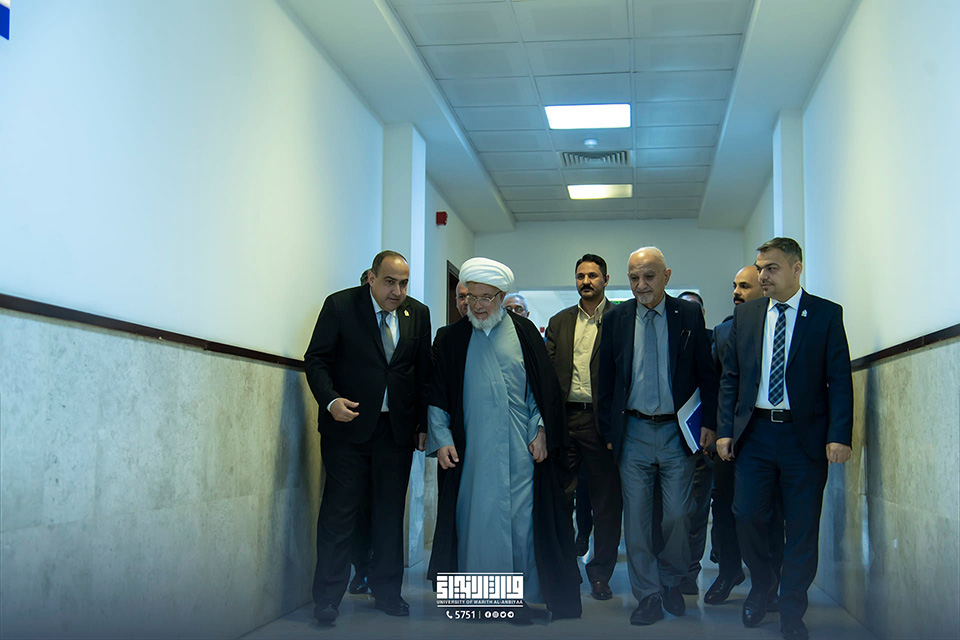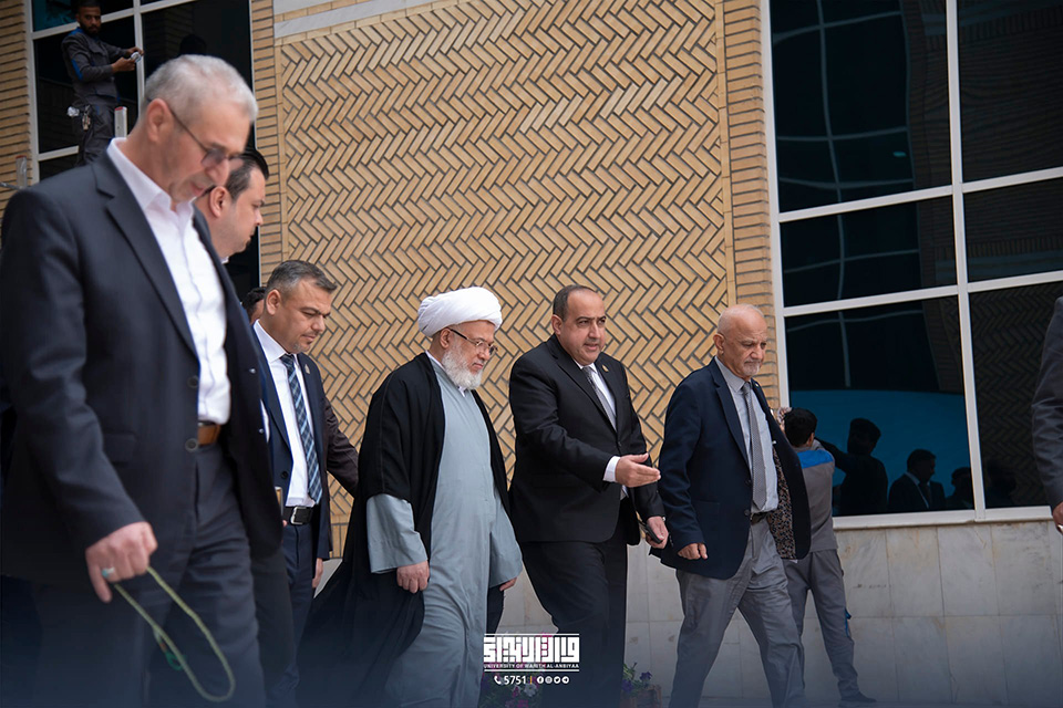 Warith Al-Anbiyaa University (PBUH) was honoured to host the Supreme Religious Authority's representative, His Eminence, the legal guardian of the Holy Shrine of Imam Hussein (PBUH), Sheikh Abdul Mahdi Al-Karbalai (may he always be honoured). The university's president, Professor Dr. Ibrahim Al-Hayawi, the administrative assistant, Professor Dr. Nofal Al-Araji, the scientific assistant, Professor Dr. Waqid Al-Mousawi, as well as college deans, received the dignitaries.