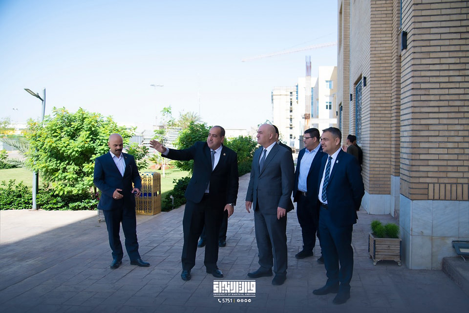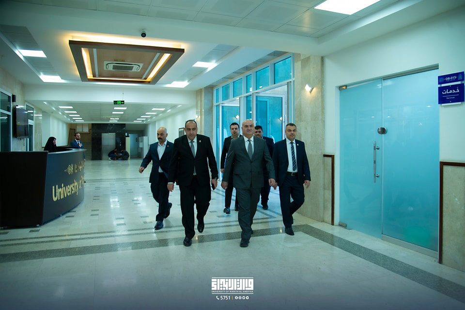Alongside University President Professor Dr. Ibrahim Al-Hayawi, the Undersecretary of the Minister of Higher Education and Scientific Research for Scientific Research Affairs, Professor Dr. Haider Abd Dahed, conducted a tour of the university's hallways. The Vice Dean expressed his admiration for the university's state-of-the-art facilities and its commitment to providing students with all academic resources.