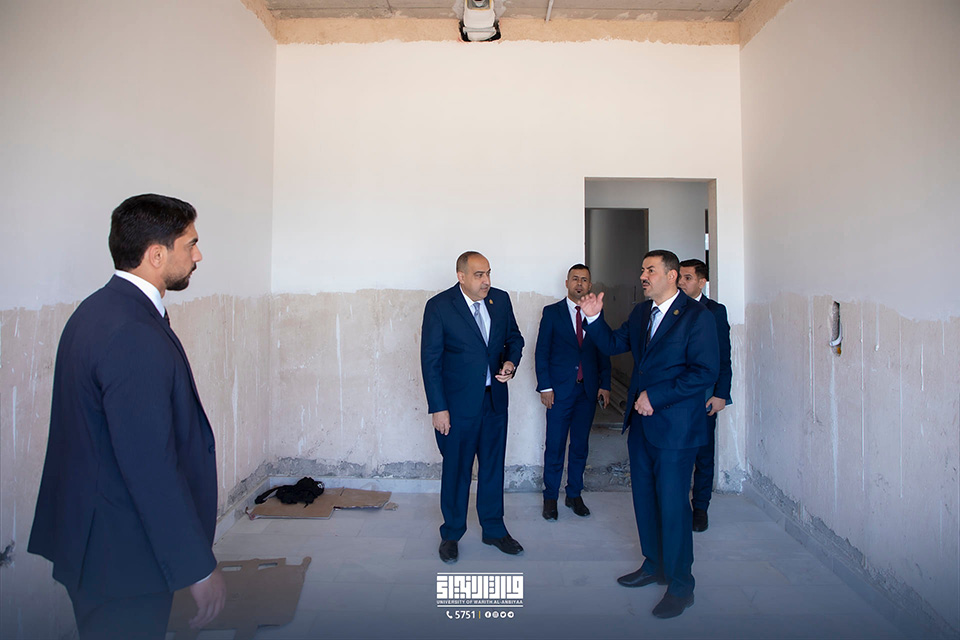A field visit to the University of Warith Al-Anbiyaa (PBUH) expansion projects led by esteemed President of the University, Professor Dr. Ibrahim Al-Hayawi, and respected Dean of the Faculty of Medicine, Professor Dr. Ali Abd Saadoun, with a review of the completion rates that have reached advanced stages.