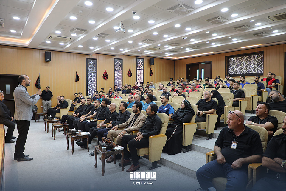 Representatives from the medical detachments at the Holy Shrines of Imam Hussein and Abbas (PBUT), the Middle Euphrates governorates, and the Iraqi Ministry of Health were present at the workshop. The University is committed to improving health competence in society, and this workshop seeks to train health and medical workers on crowd medicine procedures and treating mass casualties during million-visits.