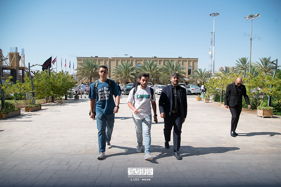 The University of Warith Al-Anbiyaa (PBUH) received a delegation of Egyptian students as part of the Student Exchange Programme for summer training. The Vice-President of the University for Scientific Affairs, Professor Dr. Waqid Al-Moussawi, and the Dean of the College of Nursing, Professor Dr. Murtada Al-Jubouri, met with the international students to discuss the training programmes that were prepared in cooperation between the Office of the Vice-President of the University and the College of Nursing.