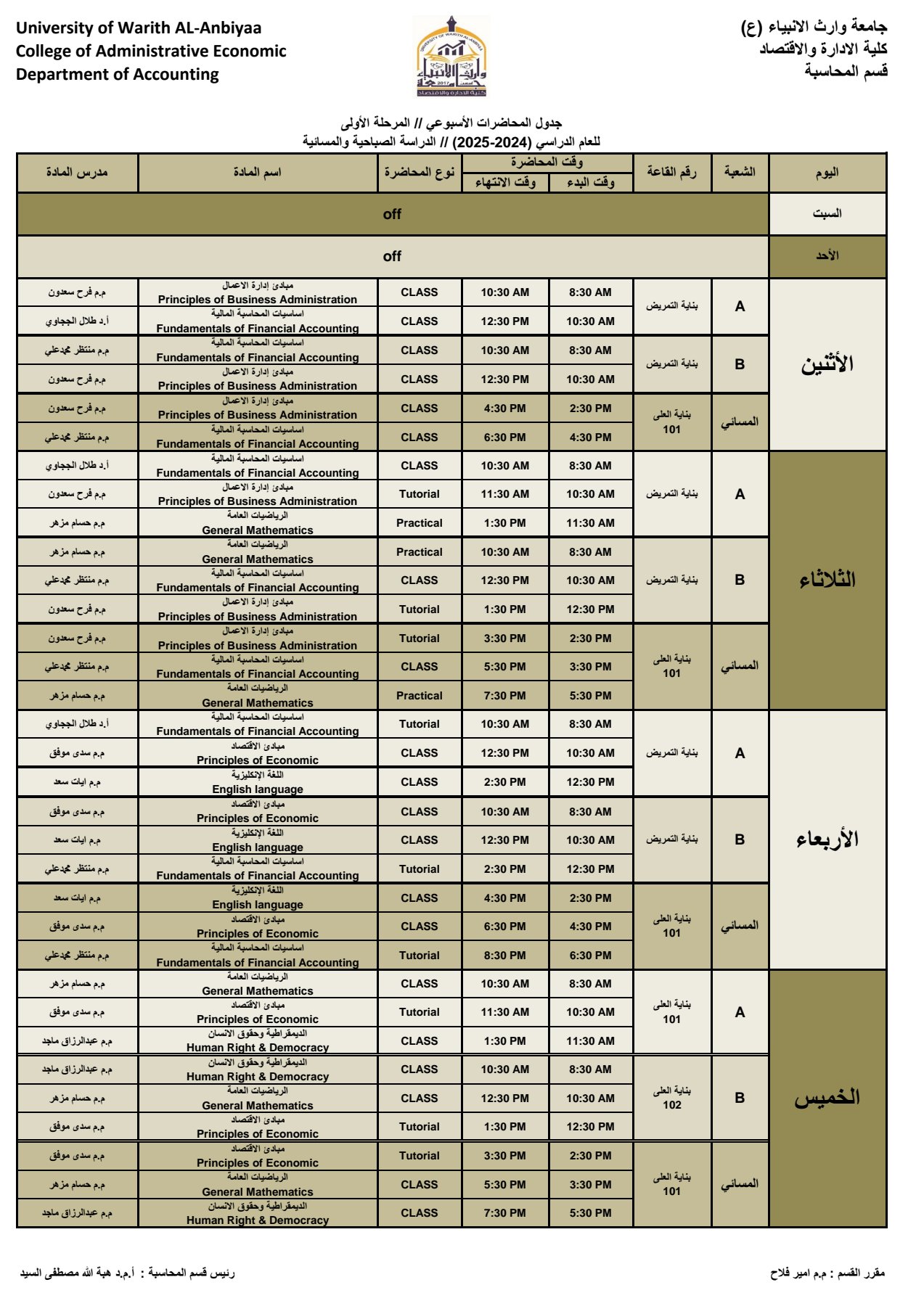 Warith Al-Anbiya University - where we graduate professional accountants with theoretical knowledge and a practical approach, capable of analyzing financial data and contributing to supporting businesses and institutions according to modern standards.