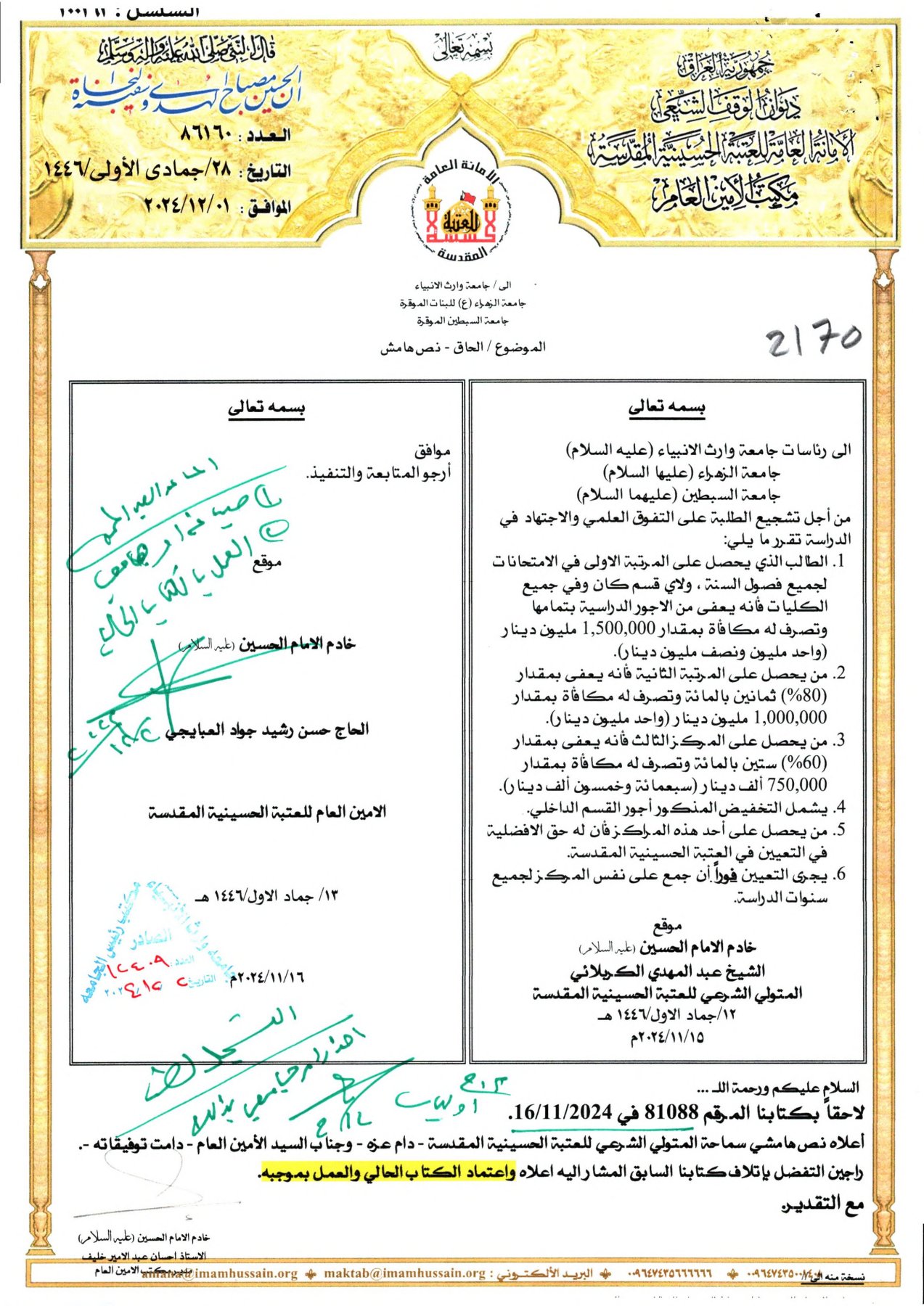 Warith Al-Anbiyaa University  Launches New Academic Departments – The First of Their Kind in Iraq