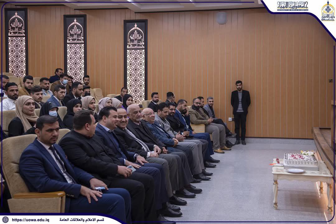 The College of Administration and Economics organized a student gathering for the first-year students to welcome them and help them prepare for the beginning of their university studies. The event was attended by prominent university figures, including the University President, Mr. Ibrahim Al-Hiyawi, his administrative assistant, Dr. Nofal, the Dean of the College of Administration and Economics, Dr. Awad Kazem Al-Khalidi, and a group of college professors. During the event, welcoming speeches were delivered, and important information and guidance were shared to assist the students in their academic journey.